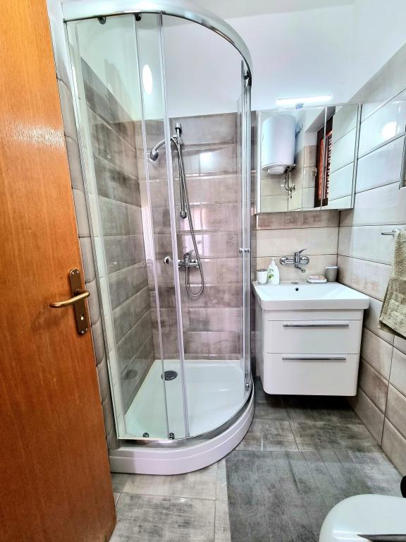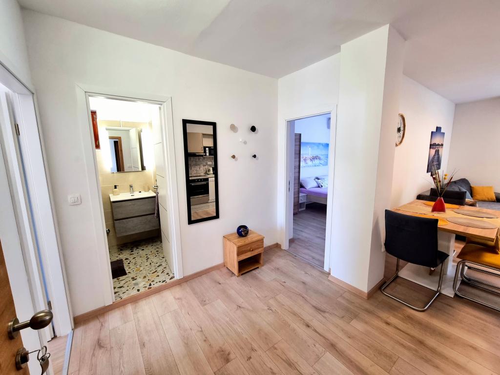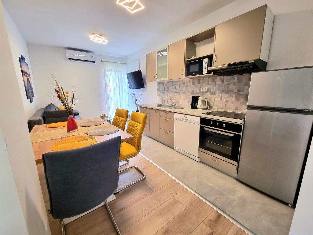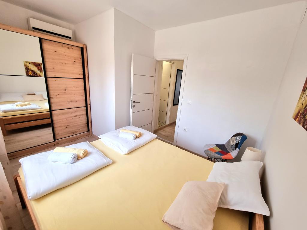 Plně vybavený a moderní dvoupokojový apartmán pro 4 osoby v Biogradu na Moru. Nemovitost se nachází v klidné části centra, jen pár minut chůze od pláže Dražice a stejně daleko je promenáda a nábřeží s restauracemi a kavárnami. Parkování pro jedno auto v objektu. Apartmán má dva samostatné pokoje, každý pokoj má vlastní klimatizaci, dvě koupelny, plně vybavenou kuchyň.