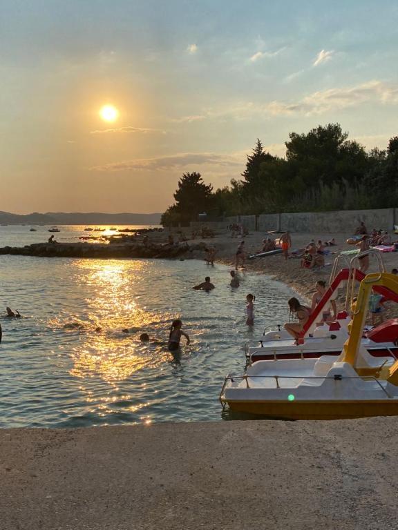 Dvoupokojový apartmán se nachází v osadě Kumenat v zátoce mezi pláží Soline a Crvenou lukou. 1 řada k moři, plně zařízeno, ručníky a ložní prádlo, WI FI. Maximálně pro 4 osoby. K dispozici je 1 bezplatné parkovací místo. V blízkosti obchody, zábavní park Biograd, restaurace v kempu Soline, písečná pláž Soline se zábavou pro děti i dospělé ve vzdálenosti cca 800m.