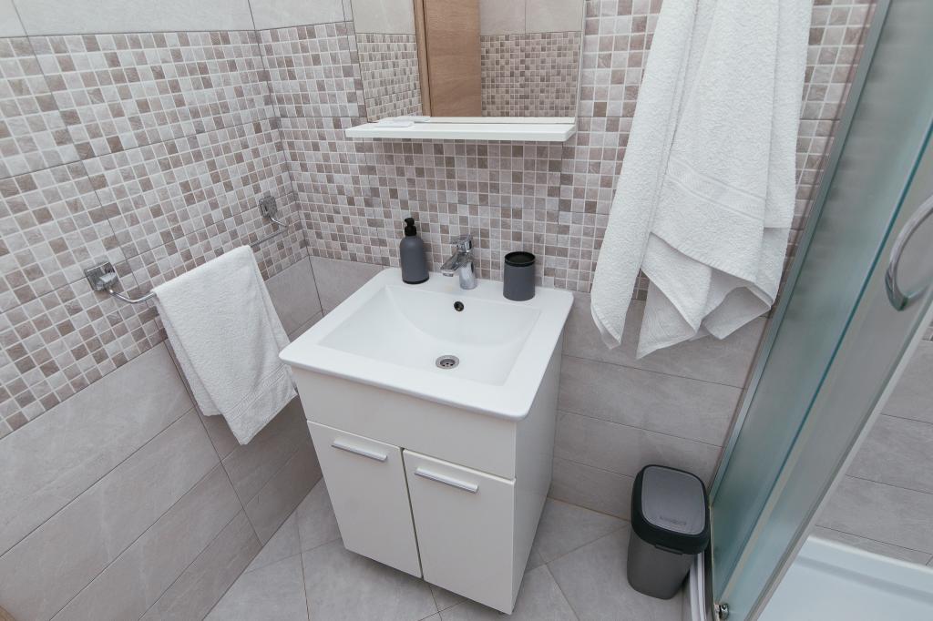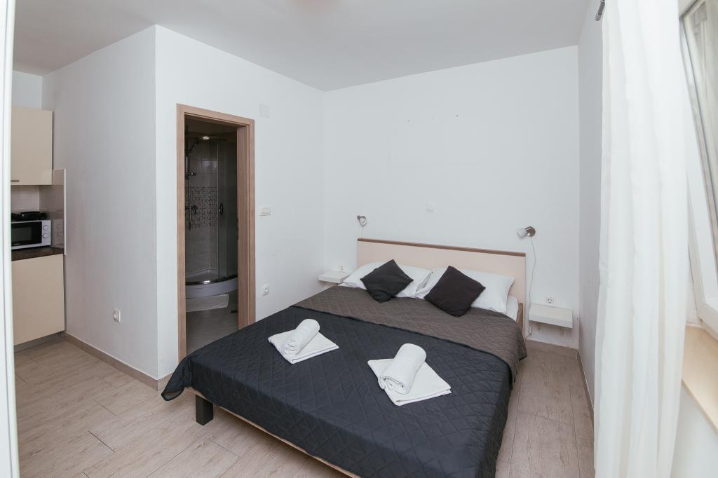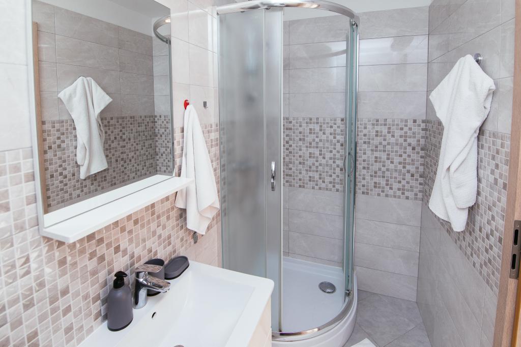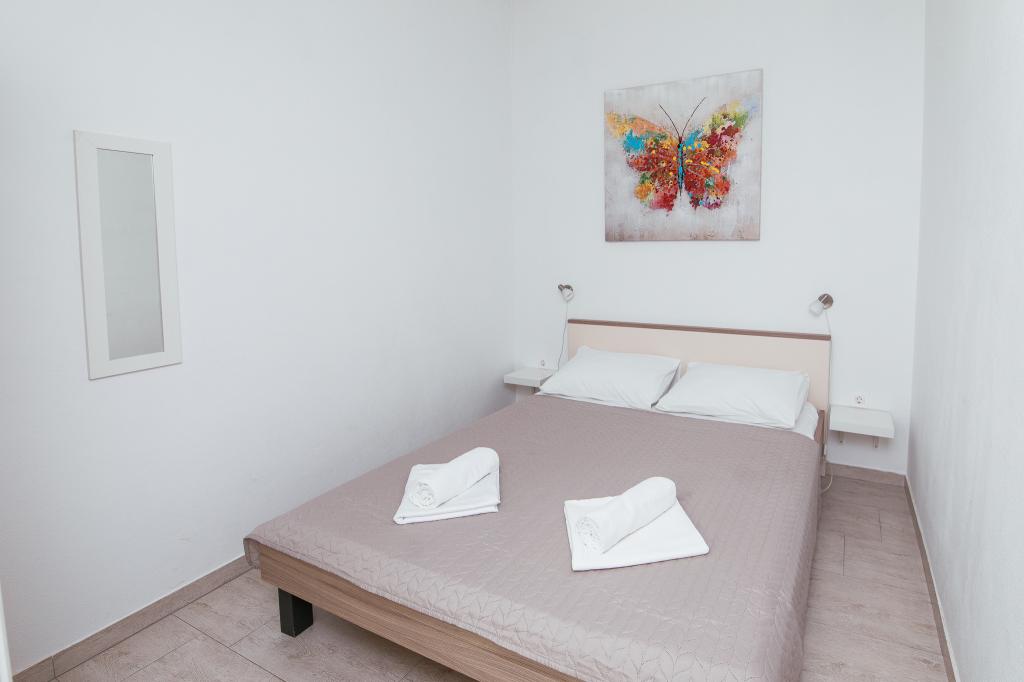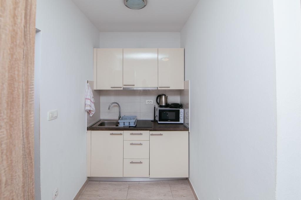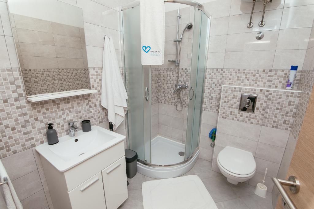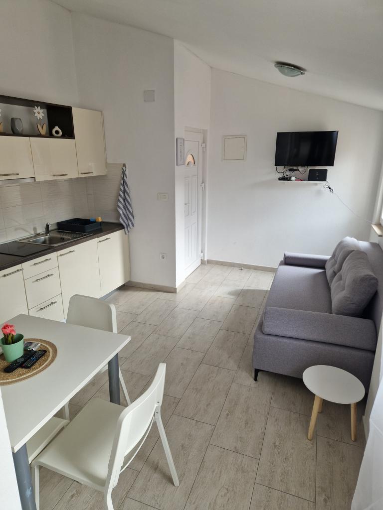 Apartmány AE se nacházejí v Biogradu na Moru na adrese Splitska ulica 37a. Apartmány se nacházejí 700 m od pláže Dražice (max. 7 minut chůze), centrum města je vzdálené 500 m. Obchod je od apartmánu vzdálený 20 m. Apartmán má jednu ložnici, rozkládací pohovku, kuchyň, koupelnu, jídelnu a velkou společnou terasu. Parkování zdarma, klimatizace, wifi, pračka, gril k dispozici.