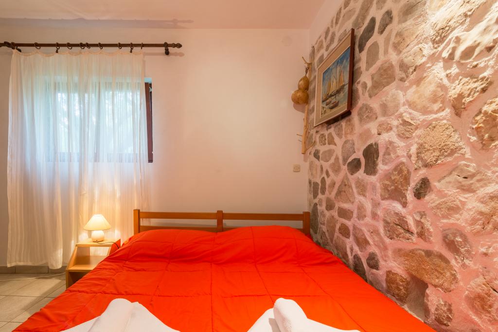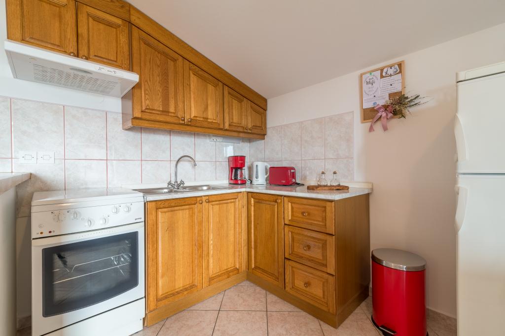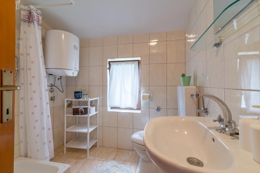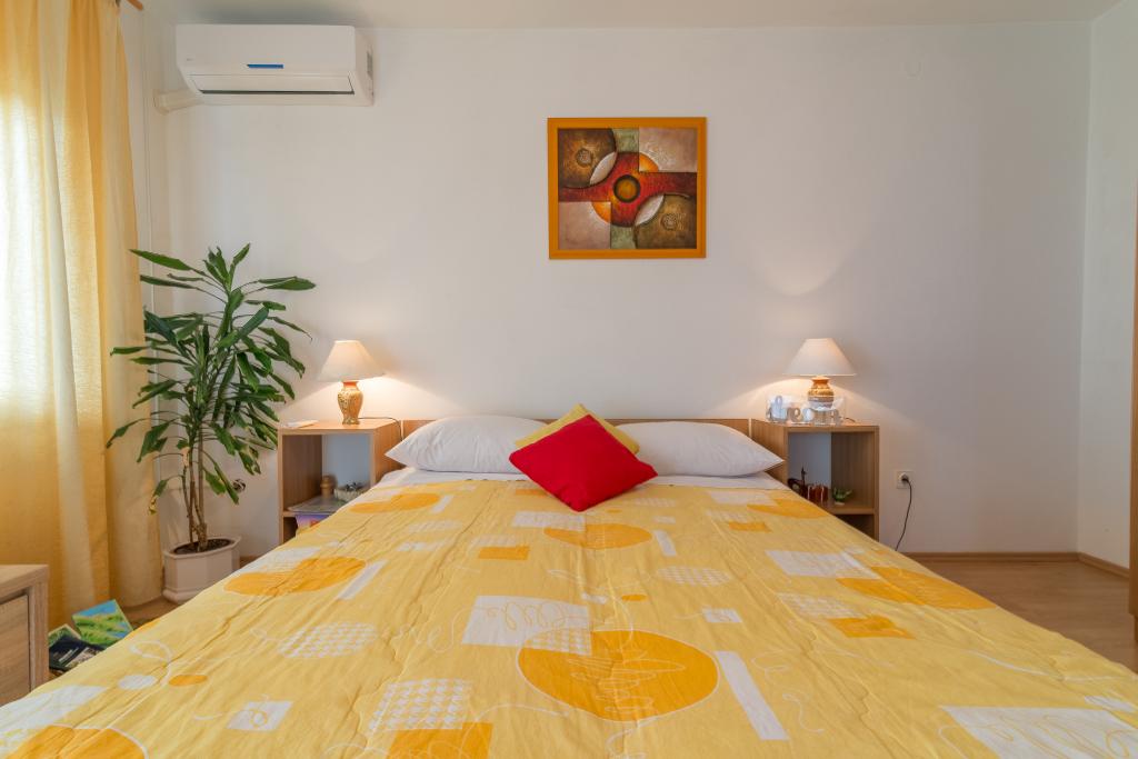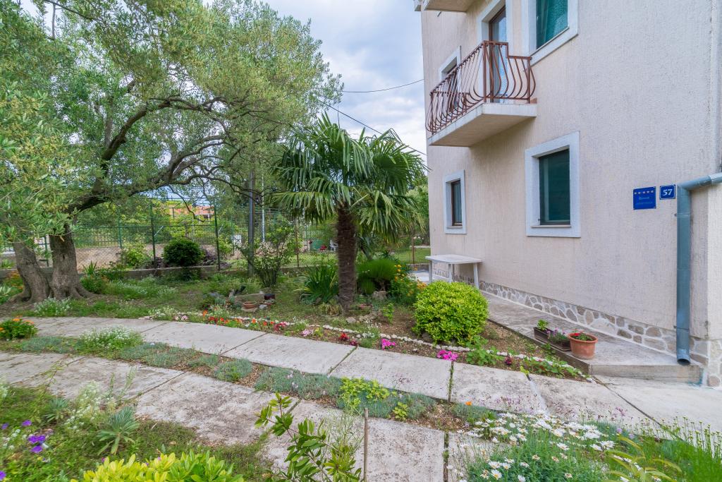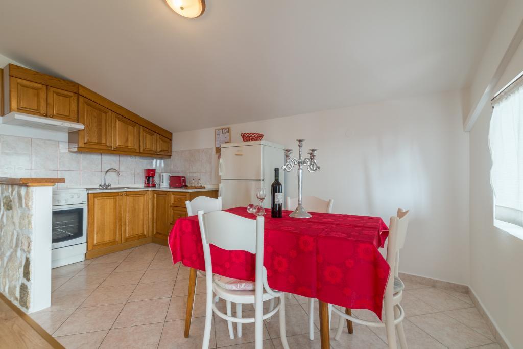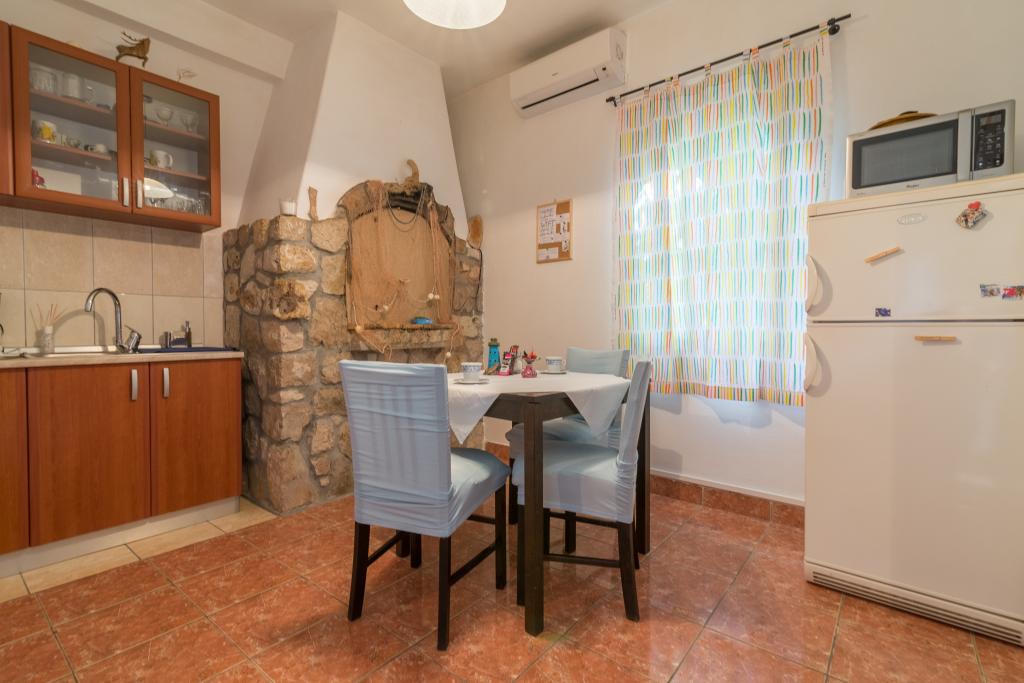 Rodinný dům se dvěma byty a pomocné budovy s jedním bytem. Apartmán A2 smješšten je v prvním patře a skládá se z kuchyně, ložnice, koupelna a terasa s výhledem na moře. Apartmán A4 +1 se nachází v nejvyšším patře, klimatizací, dvě ložnice s manželskou postelí, koupelna, kuchyň a obývací pokoj, terasa s výhledem na moře. A2 +1 se nachází v pomocné budově v přízemí, klimatizace, kuchyň, ložnice (manželská postel s přistýlkou), koupelna, 50 m od moře.