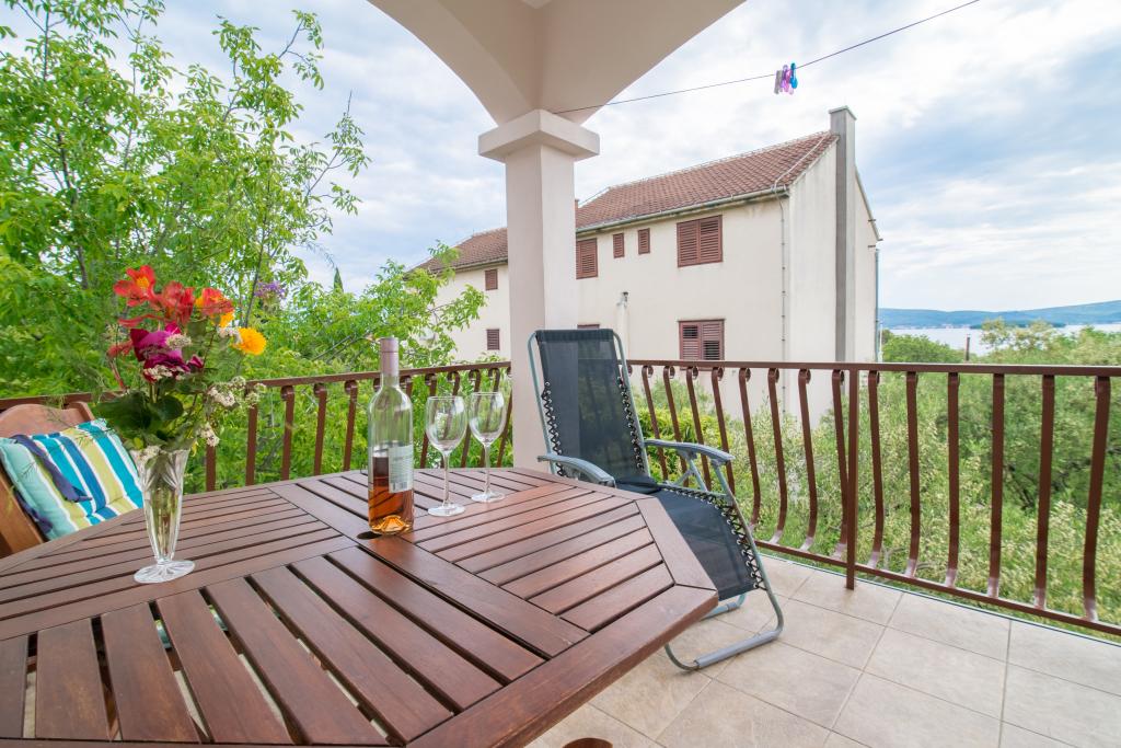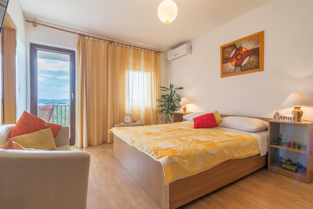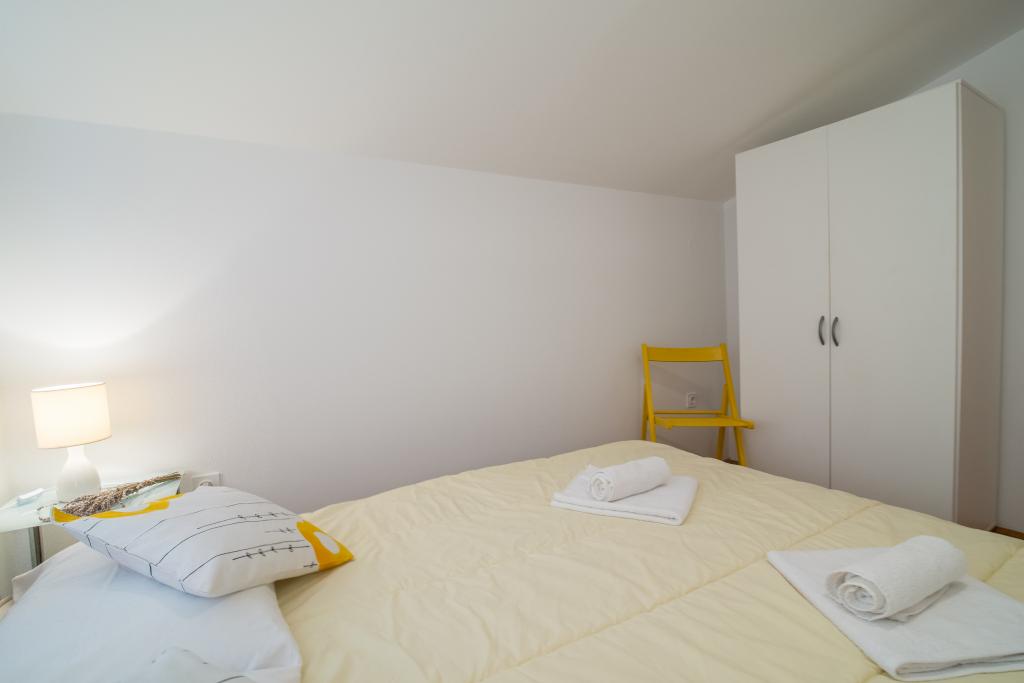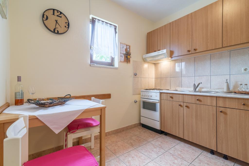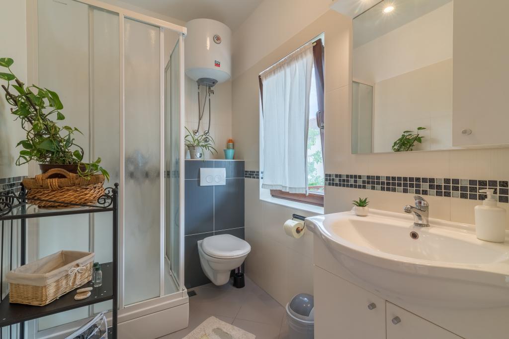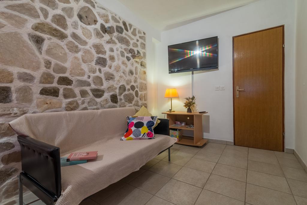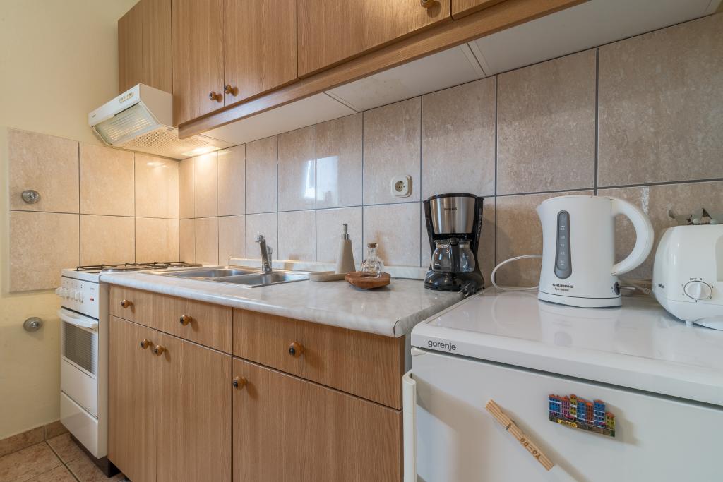 Rodinný dům se dvěma byty a pomocné budovy s jedním bytem. Apartmán A2 smješšten je v prvním patře a skládá se z kuchyně, ložnice, koupelna a terasa s výhledem na moře. Apartmán A4 +1 se nachází v nejvyšším patře, klimatizací, dvě ložnice s manželskou postelí, koupelna, kuchyň a obývací pokoj, terasa s výhledem na moře. A2 +1 se nachází v pomocné budově v přízemí, klimatizace, kuchyň, ložnice (manželská postel s přistýlkou), koupelna, 50 m od moře.