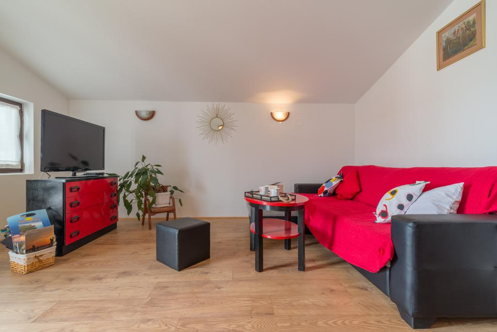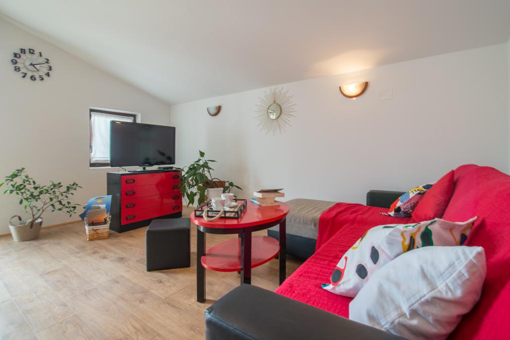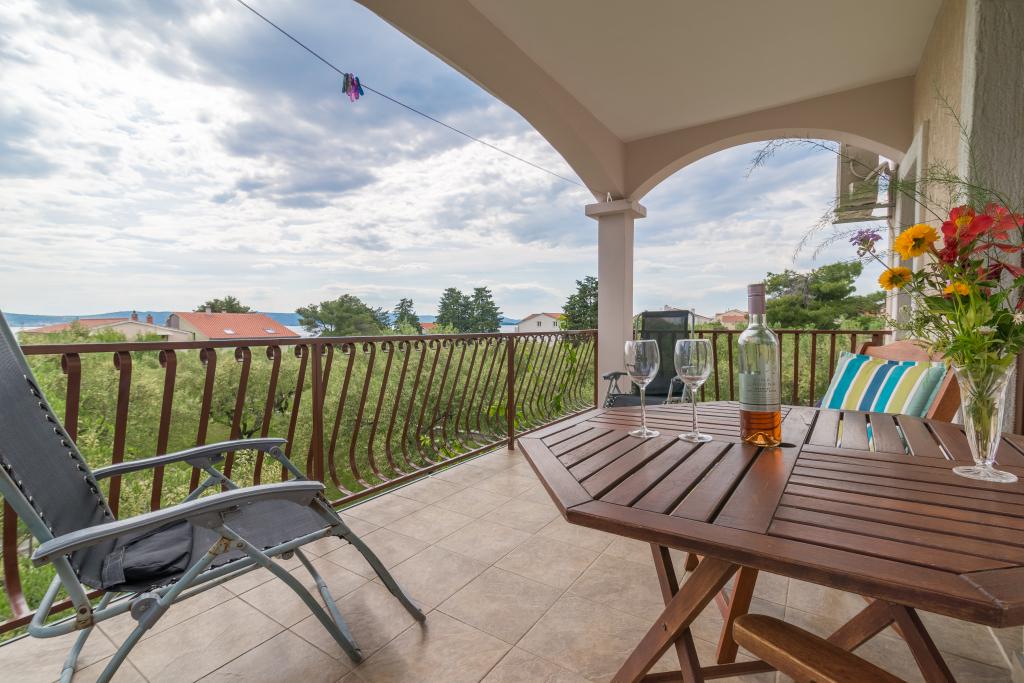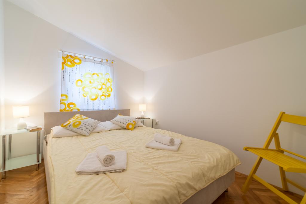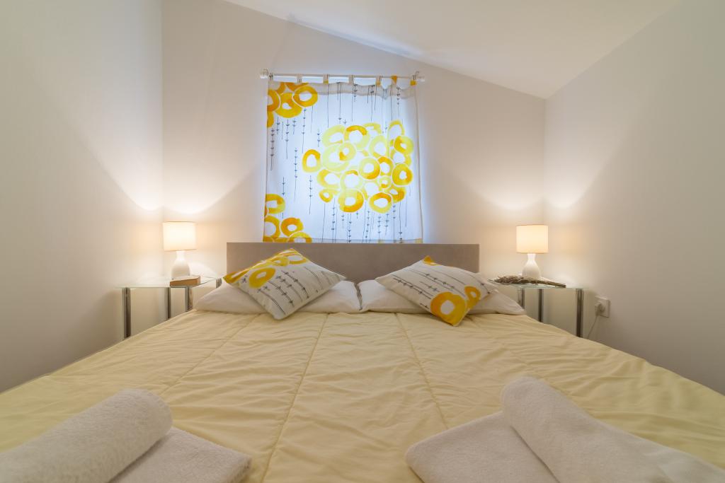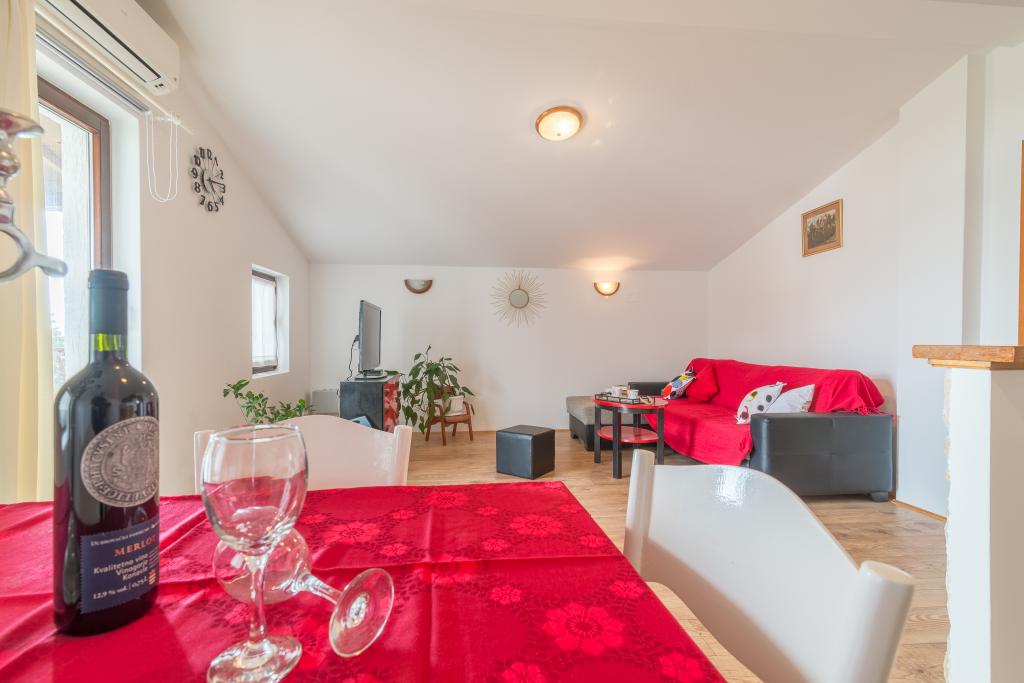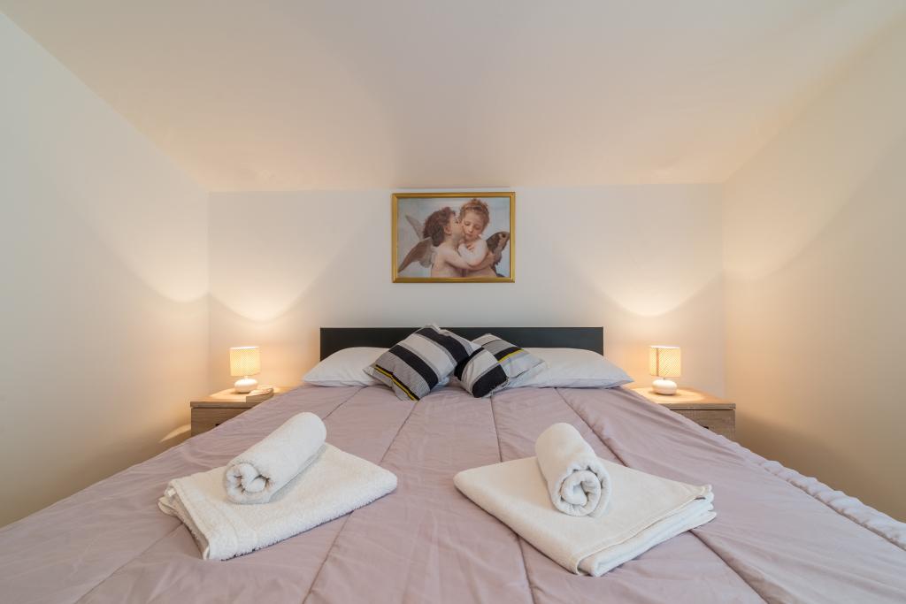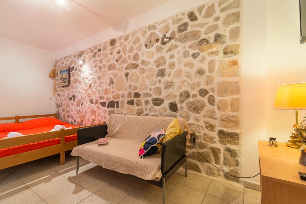 Rodinný dům se dvěma byty a pomocné budovy s jedním bytem. Apartmán A2 smješšten je v prvním patře a skládá se z kuchyně, ložnice, koupelna a terasa s výhledem na moře. Apartmán A4 +1 se nachází v nejvyšším patře, klimatizací, dvě ložnice s manželskou postelí, koupelna, kuchyň a obývací pokoj, terasa s výhledem na moře. A2 +1 se nachází v pomocné budově v přízemí, klimatizace, kuchyň, ložnice (manželská postel s přistýlkou), koupelna, 50 m od moře.