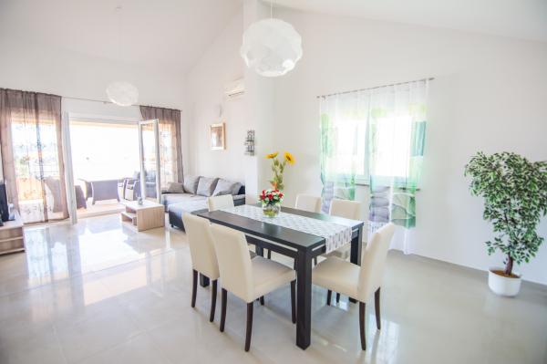 Velký, čistý, moderně zařízený apartmán, pěkný výhled na moře, 5 minut chůze na pláž, pekárna v sousedství, tichá ulice. Majitelka velmi příjemná a ochotná paní. Byli jsme tam dva týdny a bylo super. Děkujeme za krásnou dovolenou.