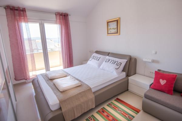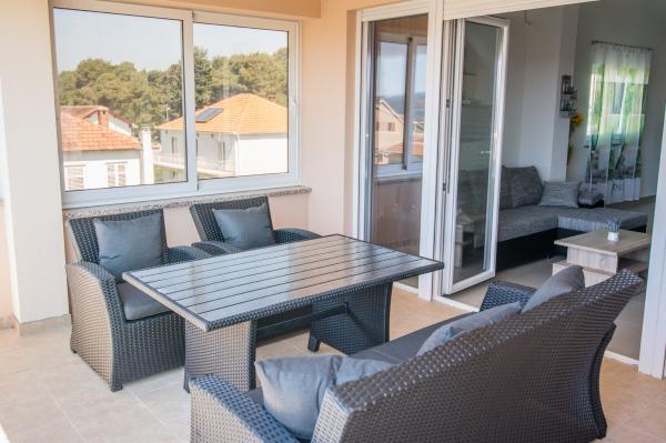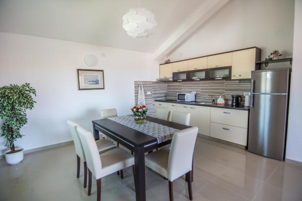 Zůstali jsme v apartmánu 4 + 3 po dobu 2 týdnů v červenci a musíme říci, že to bylo fantastické. Byt je moderní a velmi velký. Z balkonu máte nádherný výhled na moře a každý večer jsme zažili fantastický západ slunce. Majitelka je velmi milá. Rádi přijedeme znovu. Poloha bytu je velmi klidná. Méně než 1 minutu do pekárny, 5 minut na pláž, 10 minut do supermarketu pěšky. Perfektní!!!!
