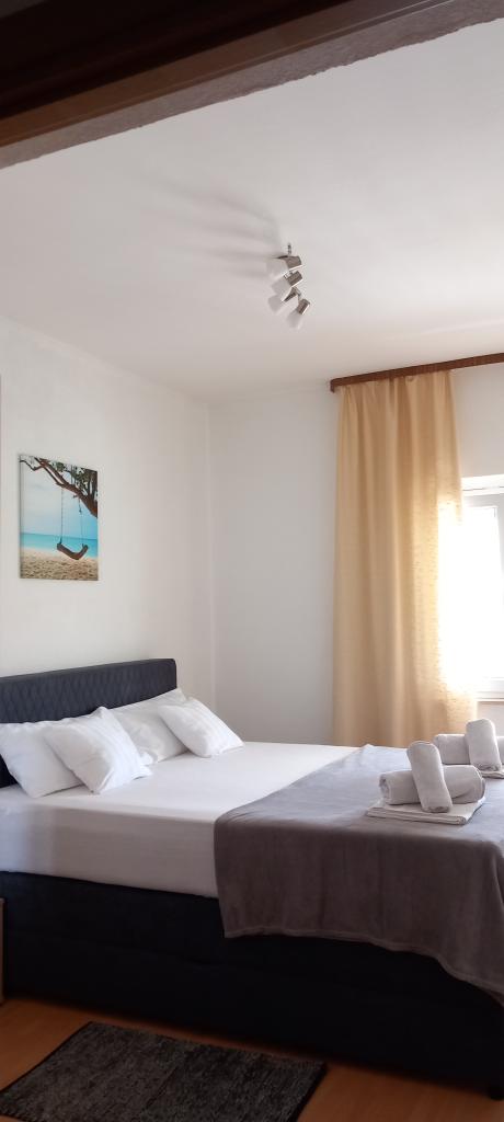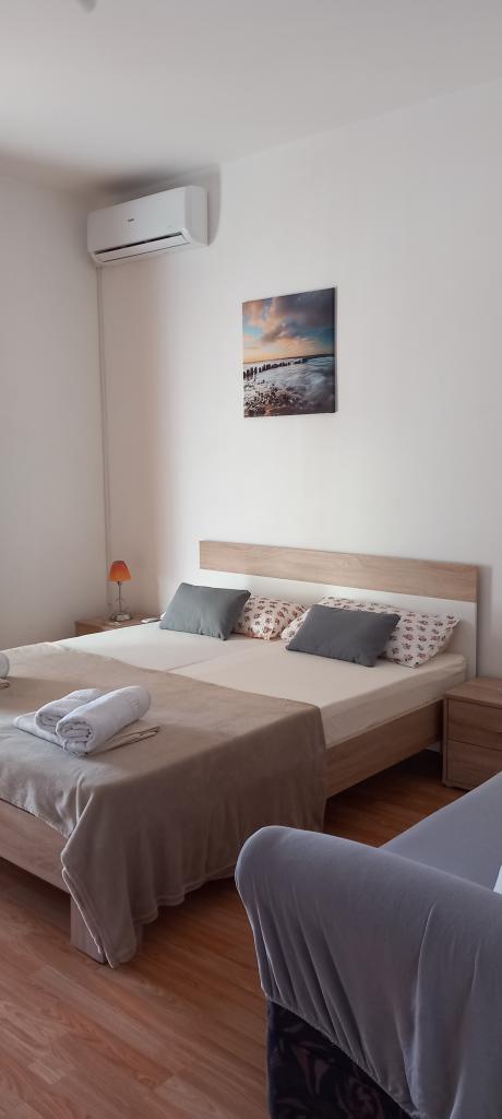 Apartmány se nacházejí v prvním patře rodinného domu, v klidné části města. 500 m od pláže a 700 m od centra města, v blízkosti borového lesa a tenisového centra. Parkování je ve dvoře domu ve stínu. Každý den je k dispozici terasa s grilem. Ve městě a okolí jsou k dispozici různé sportovní, rekreační a rodinné aktivity.
