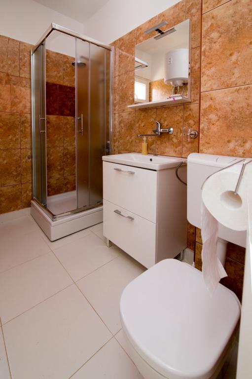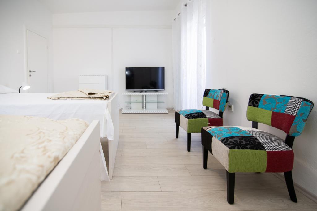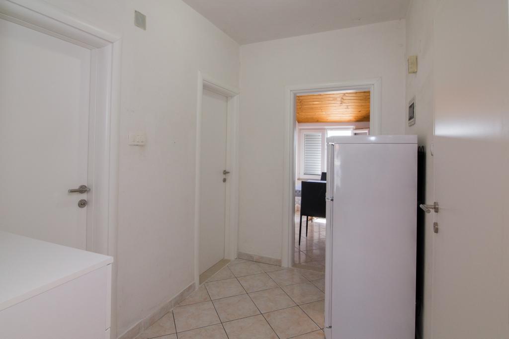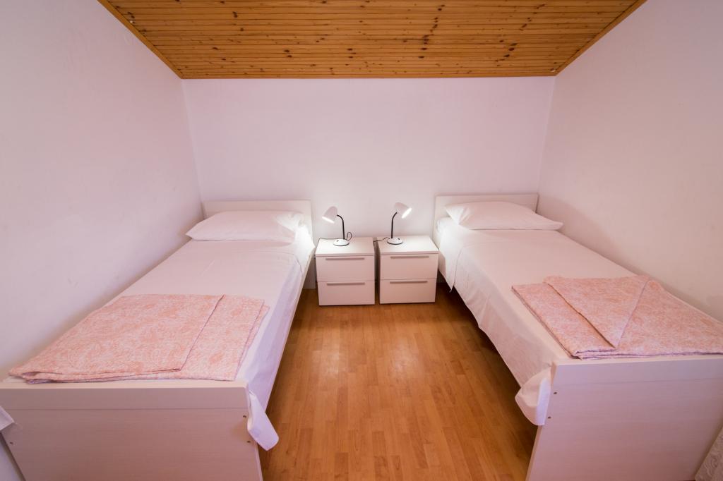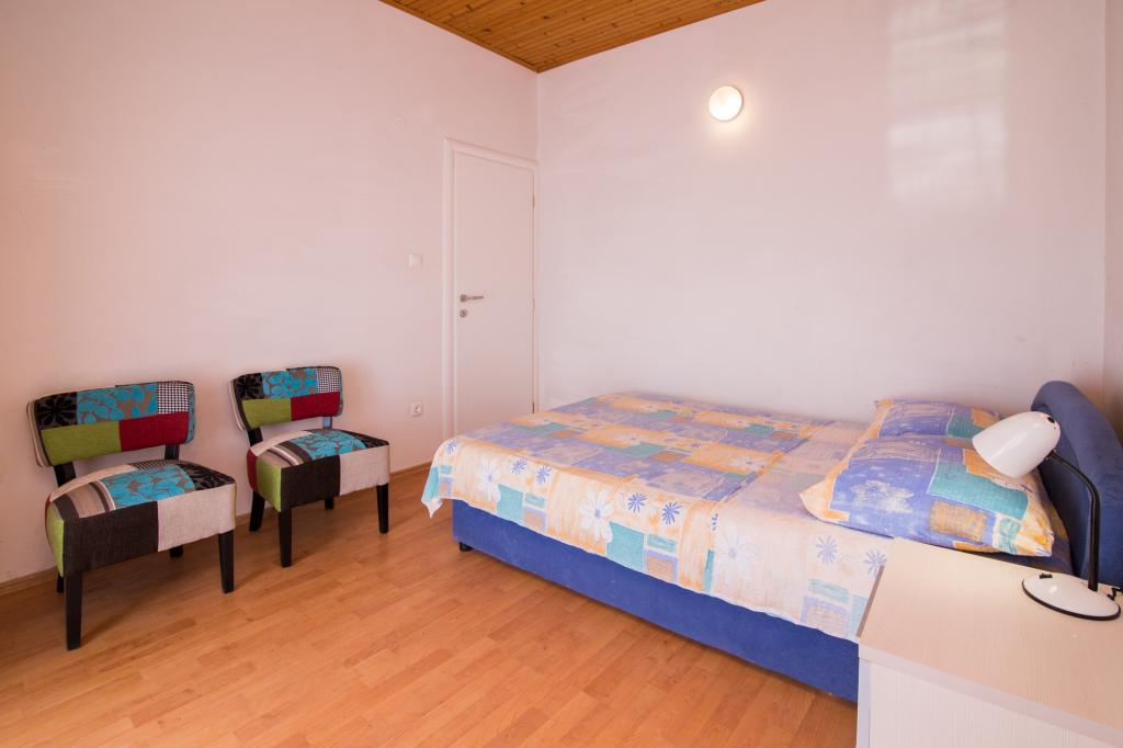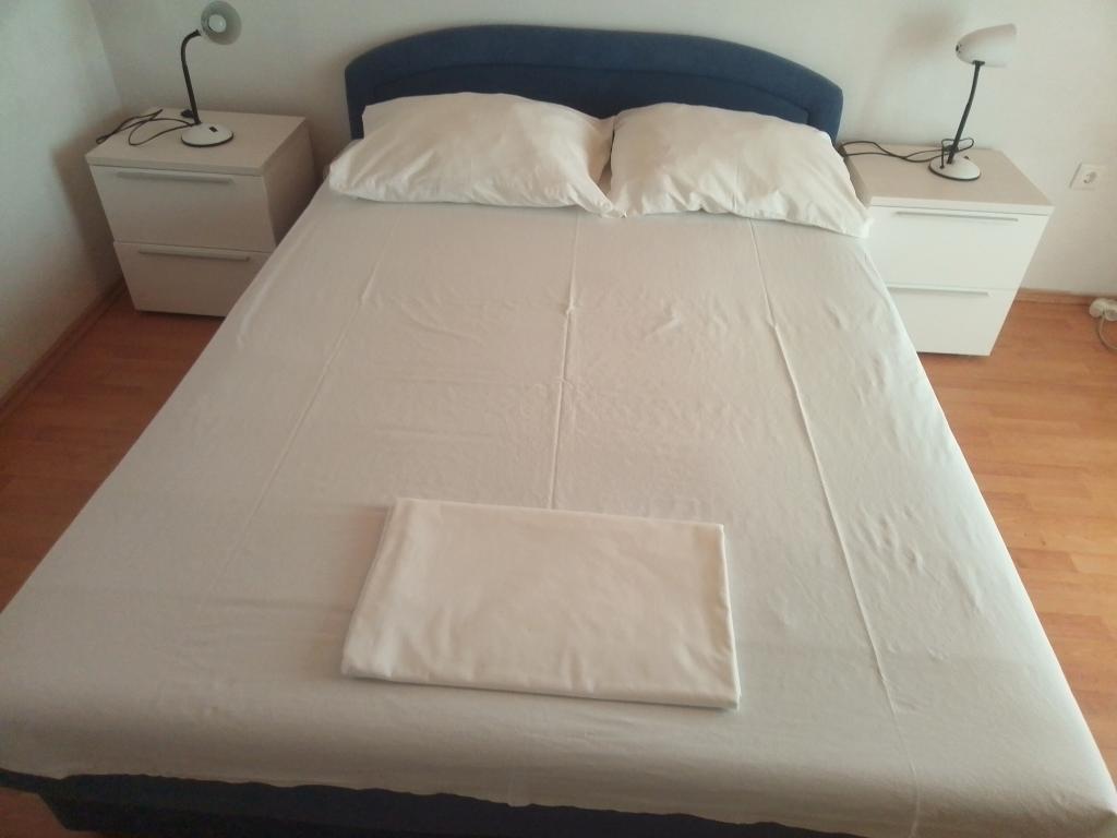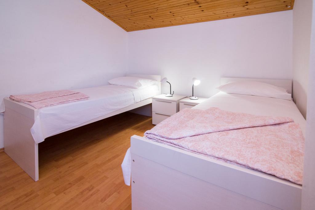 Apartmány Jadran se nacházejí v klidném apartmánovém komplexu v Biogradu na Moru Kumenat, vzdáleném od centra města, vedle turistického kempu obklopeného borovými lesy. Do centra města se dostanete 10minutovou procházkou po promenádě podél moře. Vzdálenost od stejnojmenné pláže Kumenat je asi 100 metrů a od druhé písečné pláže Soline asi 300 metrů. Apartmány se nacházejí ve druhém a třetím patře rodinného domu s výhledem na moře a ostrovy, o celkové rozloze 65 m2 každý apartmán, skládající se ze dvou samostatných pokojů s lůžky a přistýlkami a dalšího pokoje se dvěma lůžky, kuchyně s obývacím pokojem, chodby, koupelny a dvou teras. Každý apartmán má 2 pokoje a jednu přistýlku, takže ubytování je vhodné pro 5 osob, a dvě terasy v přední a zadní části domu, kde si můžete užívat a relaxovat při ranním štěbetání ptáků a kochat se výhledem na moře a ostrovy a romantickými západy slunce. Počet nocí závisí na výběru hostů, ceník je k dispozici kliknutím na tlačítko ceník. Vítejte!