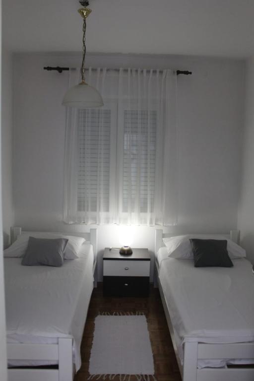 Apartmány se nacházejí v klidné části Biogradu, přímo u moře - 20 m od moře a pláže Bosana. 5 minut chůze do centra, kde najdete vše, co byste mohli potřebovat (lékárna, nemocnice, autobusové nádraží, kavárny, restaurace, nákupní centrum...) K dispozici klimatizace, WIFI, parkoviště, TV (v ceně). Příjezdy (check in) ve 14 hodin, odjezdy (check out) do 10 hodin. Pro rezervaci je vyžadována platba ve výši 200 eur.