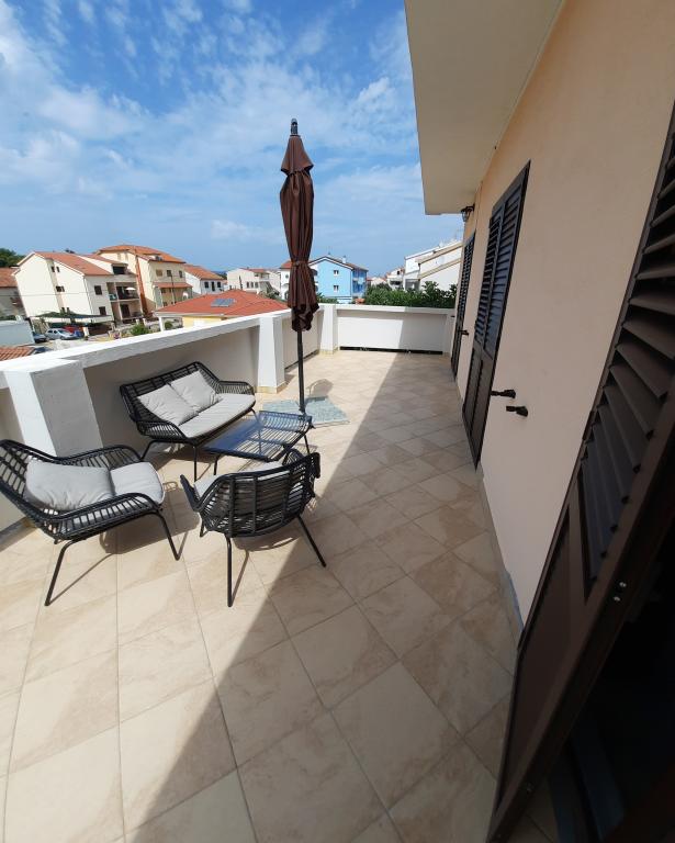 Pobytová taxa je v ceně. Doklad o potvrzení rezervace při rezervaciByli jsme s dvěma dospělými dětmi na týdenní dovolené v hlavní sezóně. S komunikací s majitelkou jsem byla velmi spokojená, i když se nám nepodařilo setkat. Její matka ji však ve všem suplovala. Poloha apartmánu, který se nachází v 1. patře, je výhodná, 7 minut od pláže Dražica. Apartmán byl po příjezdu čistý, zařízený malými drobnostmi, které zpříjemňují pobyt. Bylo tam dostatek všeho; nádobí, příbory, sklenice, ručníky, vše potřebné pro domácnost, včetně čisticích prostředků a hadříků. Možná by se hodila menší skříňka na potraviny. Koupelna je prostorná, jak jsem říkala, se vším potřebným, včetně fénu. Pokoje jsou propojené (jde se z prvního do druhého) a prostorné, skříně jsou dostatečně velké. Postele jsou pohodlné, kvalitní matrace. Každý pokoj má vlastní dveře na terasu. Terasa je velká, jídelní stůl se dá vysunout ven, ale kvůli horku a pohodlí jsme jedli uvnitř. Markýza a slunečník poskytují dostatečný stín. Byt je dostatečně velký pro 4 osoby, pro 5 by to bylo těžké. Křeslo, které se má rozložit na postel, není vhodné na spaní. V druhé místnosti je stropní ventilátor, který ale klimatizaci nenahradí. Takže je tam jen jedna klimatizace, v jídelně. Spali jsme s otevřenými dveřmi mezi místnostmi, takže do druhé ložnice procházel studený vzduch. To jsou také jediná dvě doporučení pro hostitelku Silviji. Cena je docela vysoká, ale byli jsme spokojeni, protože jsme byli unavení z apartmánů zamrzlých v 70. letech. Cena = pohodlí. Doporučujeme.