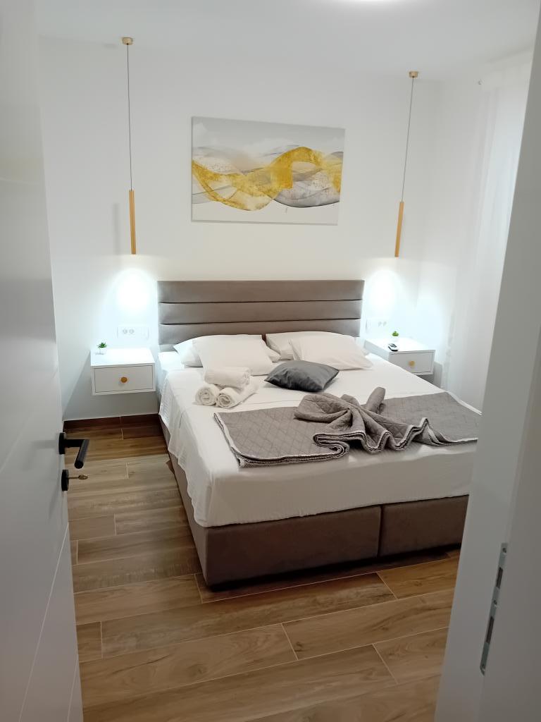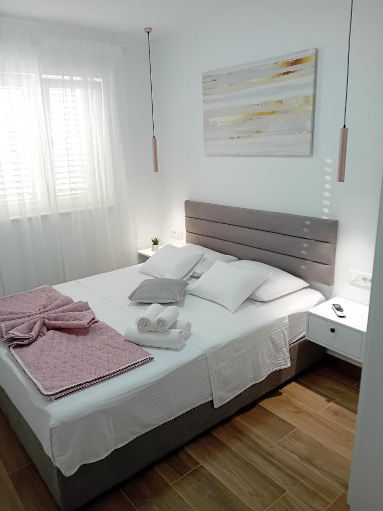 Nově zařízený apartmán v klidné části města, druhá řada od moře.Pláž 100 metrů, centrum 10 minut chůze.Hlídané parkování ve dvoře.