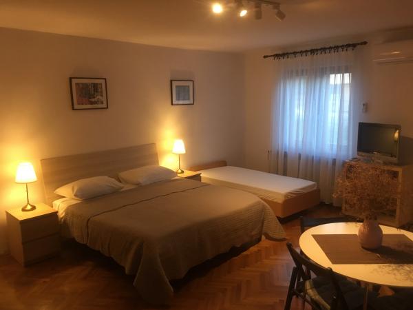 Byty v centru města, který se nachází 2-3 minut chůze od všech městských pláží. Dům se nachází v borovém lese, který vytváří přírodní klimatizace. Ve velké zahradě, máte zajištěno parkování, a děti si mohou bezpečně hrát a klidně. Všechny apartmány mají terasu s možností použití grilu. Vítejte!