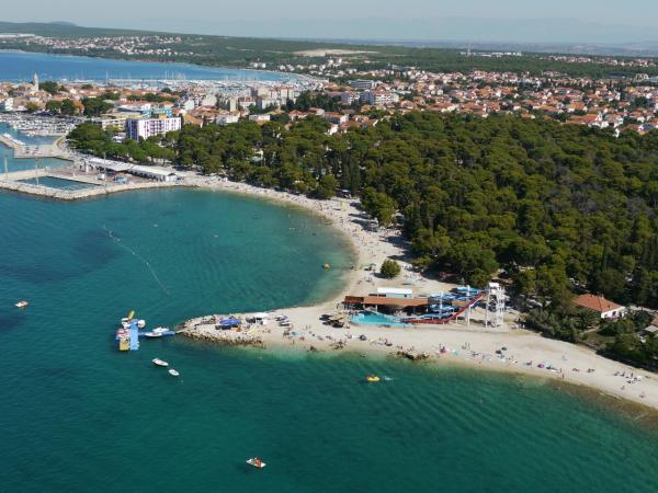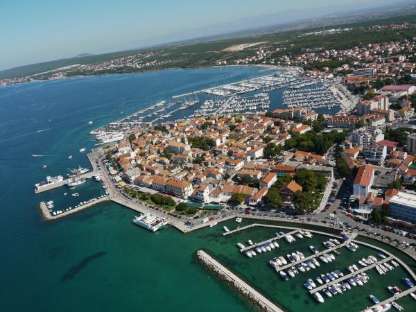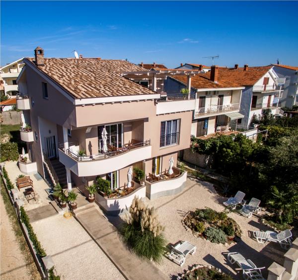 Vice Apartmány se nacházejí v městečku Biograd na Moru, v krásné exkluzivní letovisko s soukromé vily, zalesněné a klidné oblasti. Je to malá vzdálenost od centra je předpokladem pro dokonalý klid a možnost relaxace obvyklé shonu, že se nachází ve městě během léta. Ačkoli oddělené od města, ale díky krásné promenády jsou jen deset minut chůze od nábřeží, kde budete mít pomalou procházku u moře. Středisko se nachází hned vedle moderní kempu obklopen krásnou borovic. Upřímně doufáme, že budeme vaše nejlepší volba pro váš domov a těšíme se na setkání s Vámi.