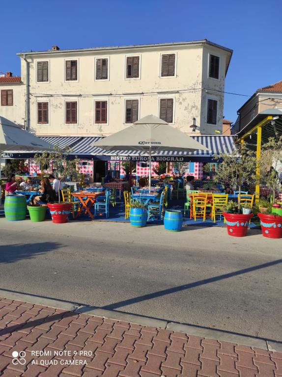 Nejkrásnější místo pro letní dovolenou v Biogradu..150 m na pláž Dražica hlavní biogradské pláže, malá písečná pláž 150 m, blízko pláže Soline. Všechny apartmány mají vlastní terasu (lodžii), klimatizaci... parkování, pobytová taxa, wi-fi v ceně ubytování... ubytovací kapacita, dva apartmány A4 plus přistýlka, dva apartmány A5 plus přistýlka... K vchodu do moře máte 3-4 minuty snadné chůze po promenádě... střed hlavní pláže Dražica.. Pláž Dražica propojená s pláží Soline a centrem... do centra (riva) 5 minut snadné chůze po promenádě.. veškeré vybavení pro děti i dospělé, dětský park vedle apartmánu... banka, lékárna, zdravotní středisko, tržnice, bazén 200 m, tenisové kurty, letní kino - vše do 300 m... obchod 100 m... centrum města - riva 300 m... propojeno promenádou podél pobřeží.