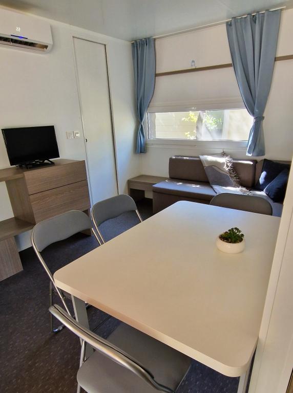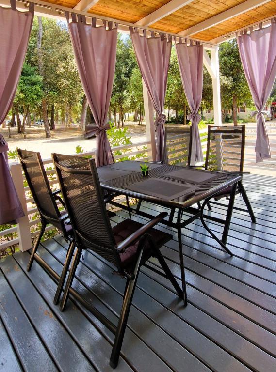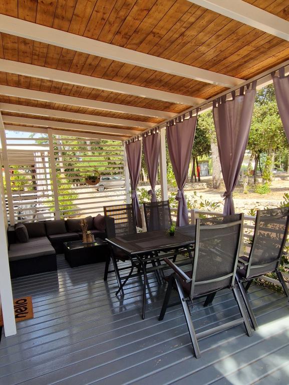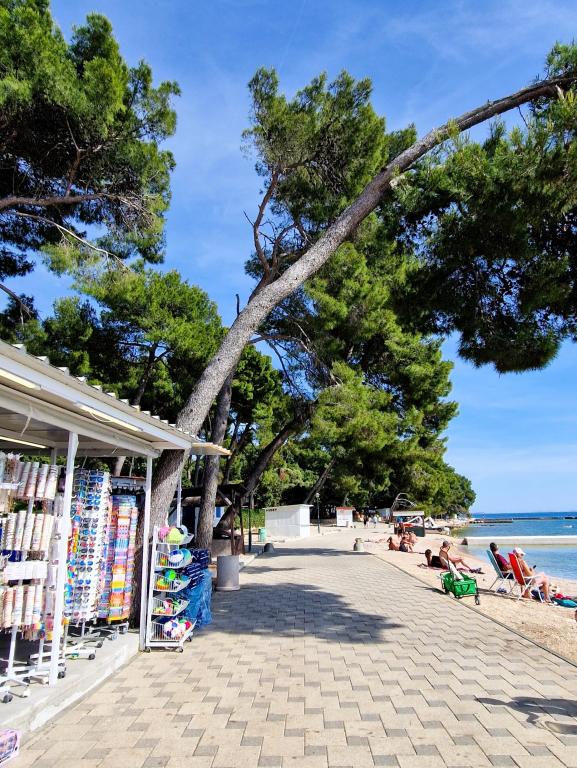 Vítejte v karavanu ARIA, který se nachází v krásném kempu Soline Park, ve stínu hustého borového lesa hned vedle jednoho z nejkrásnějších pobřeží Jaderského moře. Poloha nabízí ideální kombinaci přírodního klidu a blízkosti veškeré občanské vybavenosti - do centra Biogradu se dostanete za pouhých 15 minut poklidnou procházkou po udržované pobřežní promenádě. Podél celého pobřeží kempu se táhnou oblázkové a písečné pláže, stejně jako četné kavárny, restaurace, obchody a další turistické atrakce. Karavan ARIA se nachází na adrese číslo 693 a je plně vybaven pro bezstarostný a příjemný rodinný pobyt. Obsahuje dvě oddělené ložnice, obývací pokoj s rozkládací postelí, kuchyň s jídelním koutem a prostornou terasu bezpečnou pro děti. Klimatizace, TV, soukromé parkovací místo, pračka. Ubytování je vhodné zejména pro rodiny s dětmi - terasa je oplocená a okolí je klidné a přírodní. Kemp má také zábavní park, dětské hřiště, dětský klub a různé denní a večerní animační programy.