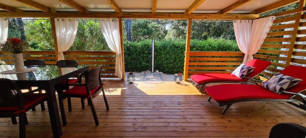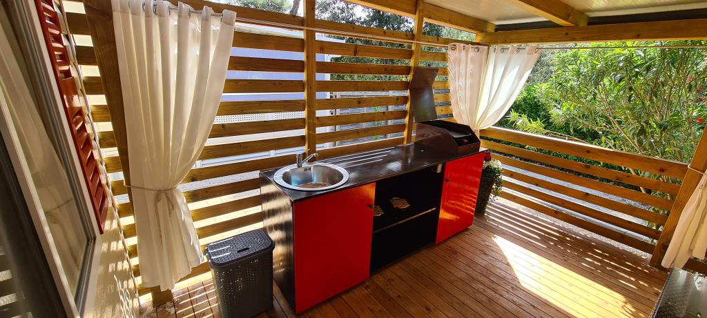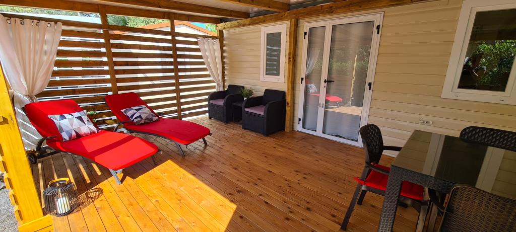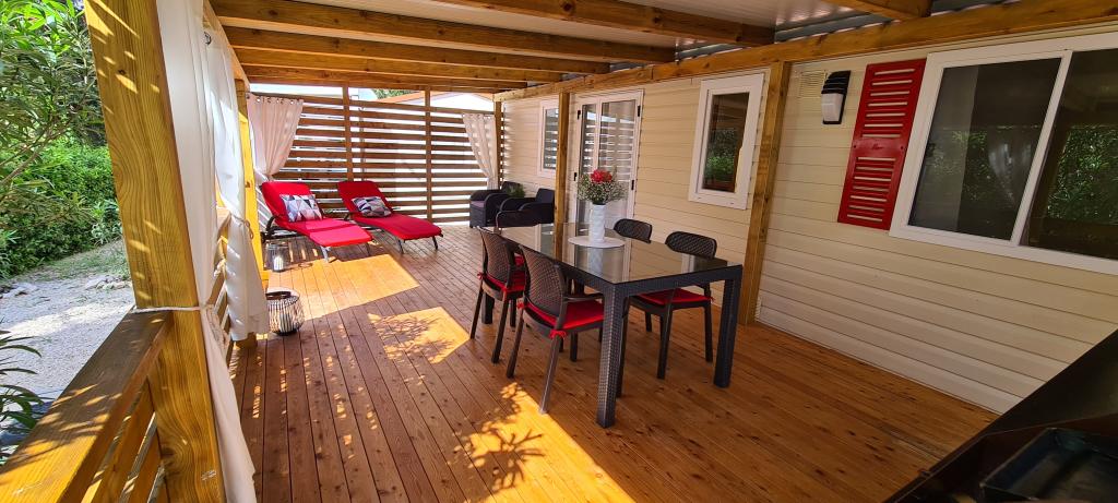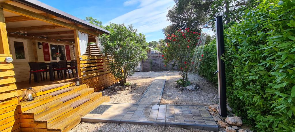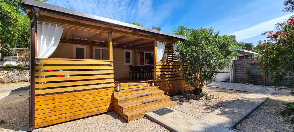 Blue Wave Mobile Home II se nachází v první řadě k zátoce Soline a je chráněn před zraky. Plně vybavený mobilní dům se dvěma oddělenými ložnicemi se skříněmi, obývacím pokojem s přistýlkou (135x190), plně vybavenou kuchyní s klimatizací a velkou terasou. Na terase je gril, jídelní stůl a pohodlná lehátka. Bezdrátové připojení k internetu je k dispozici v celém objektu zdarma.