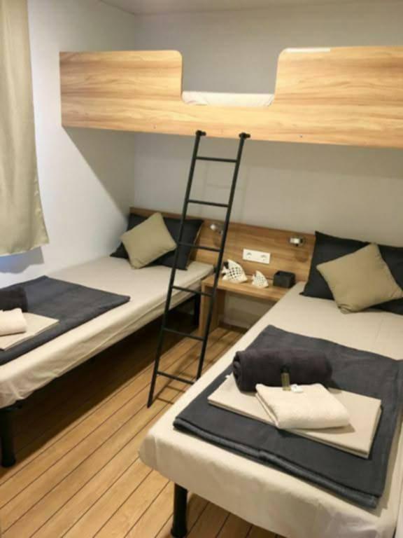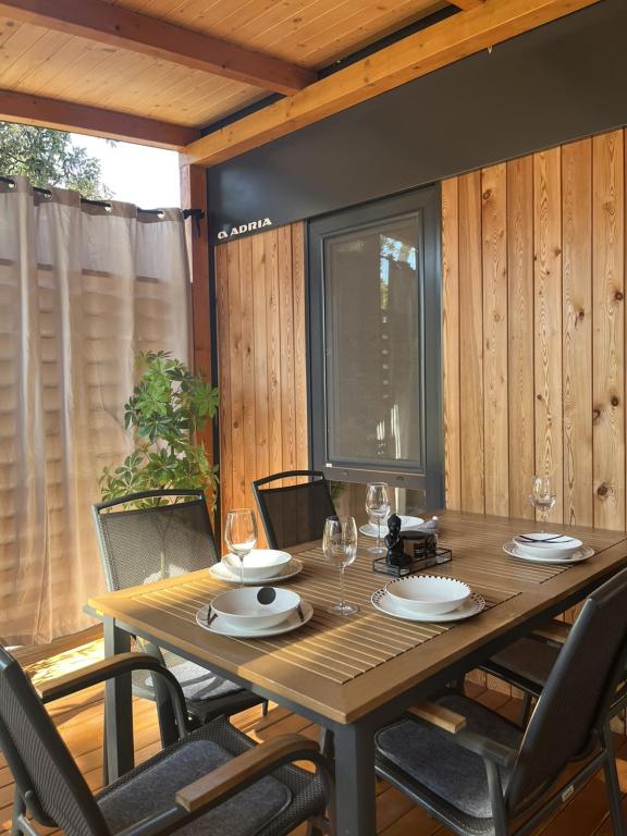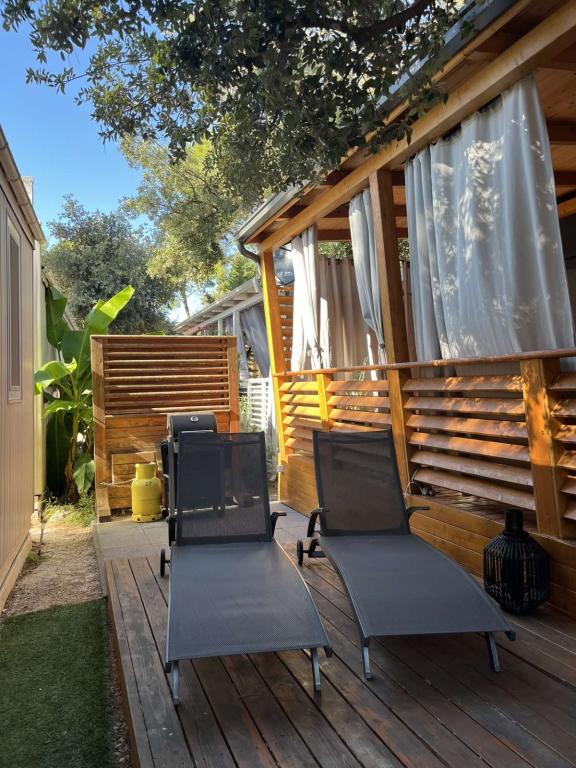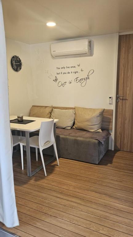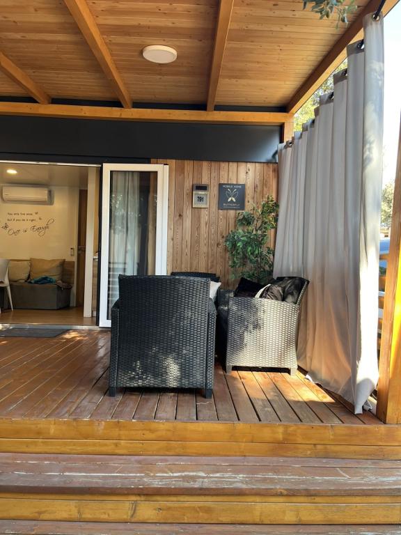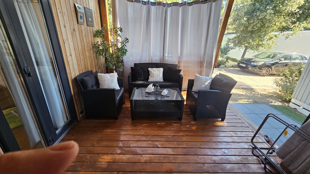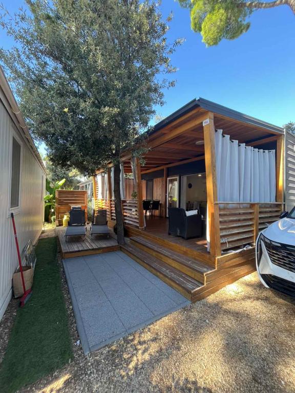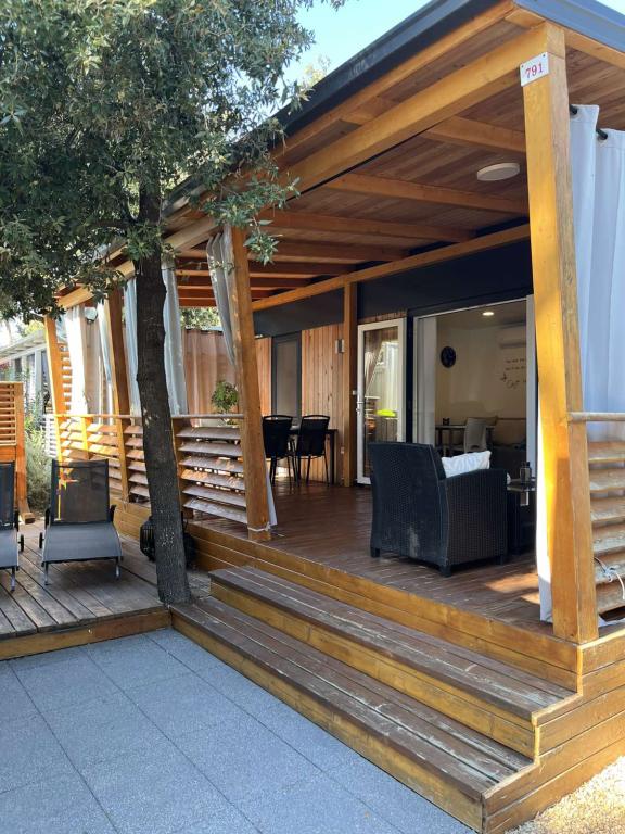 Moderní klimatizovaný mobilní dům v kempu Park Soline, jen pár kroků od pláže a 15 minut chůze od centra Biogradu. Nabízí 2 ložnice, kuchyň, obývací pokoj, 2 koupelny a krytou terasu s venkovním nábytkem. Bezplatné Wi-Fi, parkování, dětská zábava, sportovní hřiště a středomořská restaurace v areálu. Ideální pro rodiny nebo páry, které hledají odpočinek ve stínu borovic, v blízkosti všech hlavních atrakcí.