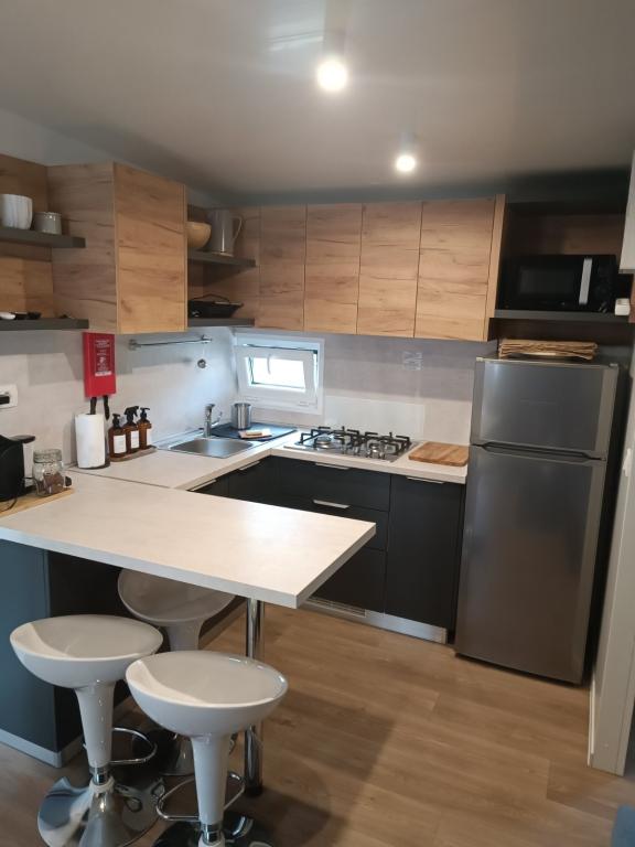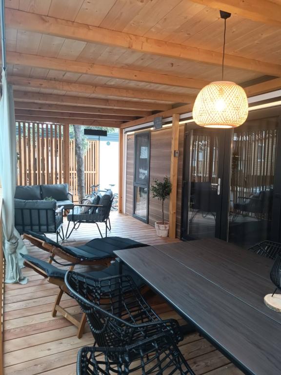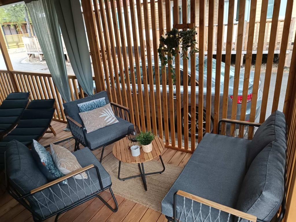 Moderní mobilní dům InnMare 646 v klidné části kempu Soline, nacházející se v borovém lese, je ideálním místem pro rodinnou dovolenou. S rozlohou 32 m2 se skládá z ložnice s manželskou postelí, ložnice se dvěma samostatnými lůžky, obývacího pokoje s rozkládací pohovkou (pro 1-2 osoby), dvou samostatných koupelen s toaletou, terasy o rozloze 32 m2, malé zahrady a parkovacího místa. Nemovitost je plně zařízená, kuchyň kromě standardního vybavení obsahuje také mikrovlnnou troubu, rychlovarnou konvici a kávovar na espresso. Terasa je vybavena dalším jídelním stolem, lehátky pro dokonalé zdřímnutí okořeněné vůní borovic a vedle nemovitosti se nachází gril, který je také nedílnou součástí vybavení, které mohou hosté využívat. Vedle nemovitosti se nachází také parkovací místo pro jedno vozidlo, které mohou hosté využívat. Vítejte v InnMare 646, moderním objektu určeném pro klidnou a idylickou rodinnou dovolenou v tichém borovém lese, v blízkosti moře, pláží a Biogradu na Moru!
