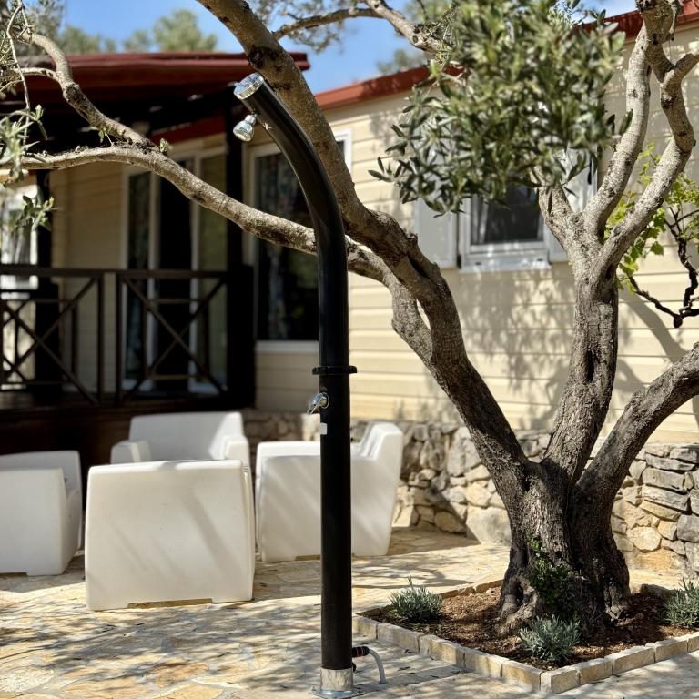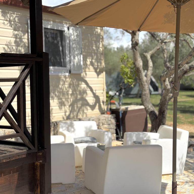 Mobilní dům se nachází v kempu Bakija, 40 m od moře, se snadným přístupem na pláž Nedaleko pláže Soline, 2-3 minuty pěšky, 1 minutu chůze na trh Studenac a 7-8 minut pěšky. pěšky do centra Plně vybavená zahrada, kuchyně, pohodlný obývací pokoj. Vlastní venkovní gril v rámci chaty a vlastní venkovní sprcha. Zařízení je pro 4 osoby, 2 pokoje, 2 koupelny, z toho jedna koupelna s masážní vanou. Prostorná terasa, ideální pro příjemný pobyt s výhledem na moře a krásné západy slunce.
