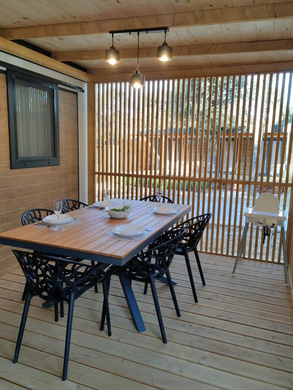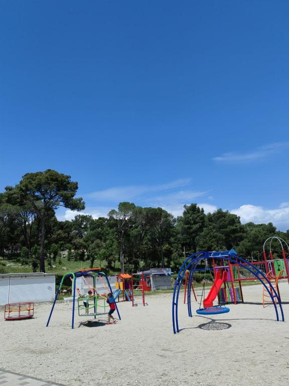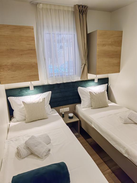 TONKA je plně vybavený mobilní dům se dvěma pokoji [jeden s manželskou postelí a druhý se třemi samostatnými lůžky], skříněmi, koupelnou se sprchovým koutem, obývacím pokojem s přistýlkou [130 x 180 cm], plně vybavenou kuchyní , klimatizace a velká terasa, která je vybavena plynovým grilem a jídelním stolem, terasový nábytek se stolkem, dvě pohodlná lehátka a závěsné křeslo s polštářem, závěsná houpačka, bezdrátové připojení k internetu v celý areál zdarma. Mobilní dům se nachází v klidu borového lesa v kempu Soline park v Biogradu na moru. TONKA je 2-3 minuty chůze od restaurace, pláže a kavárny. V kempu jsou stroje na praní a sušení prádla, obchod, bankomat, pekárna, dětské hřiště a vše co potřebujete pro příjemný pobyt.V bezprostřední blízkosti kempu je promenáda u moře, centrum Biogradu, přístavu Kornati a všeho toho cc 10 minut chůze...
