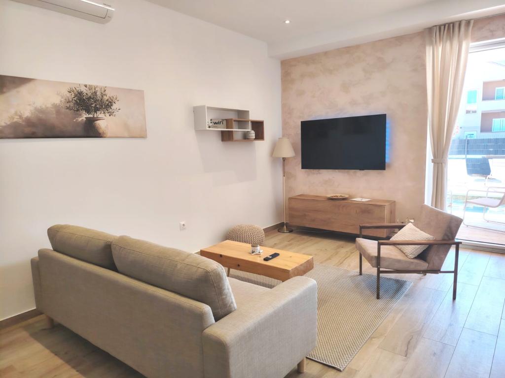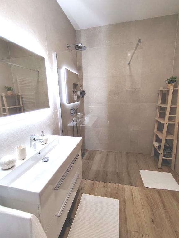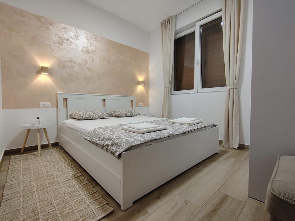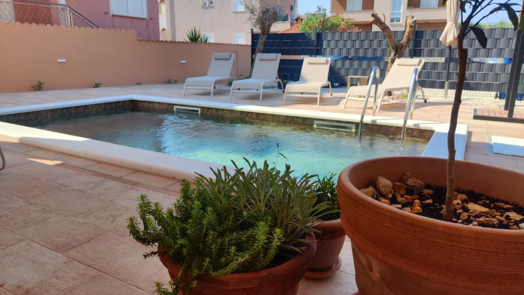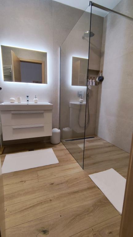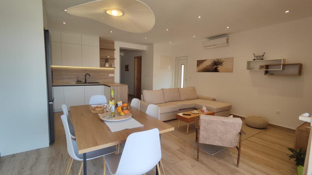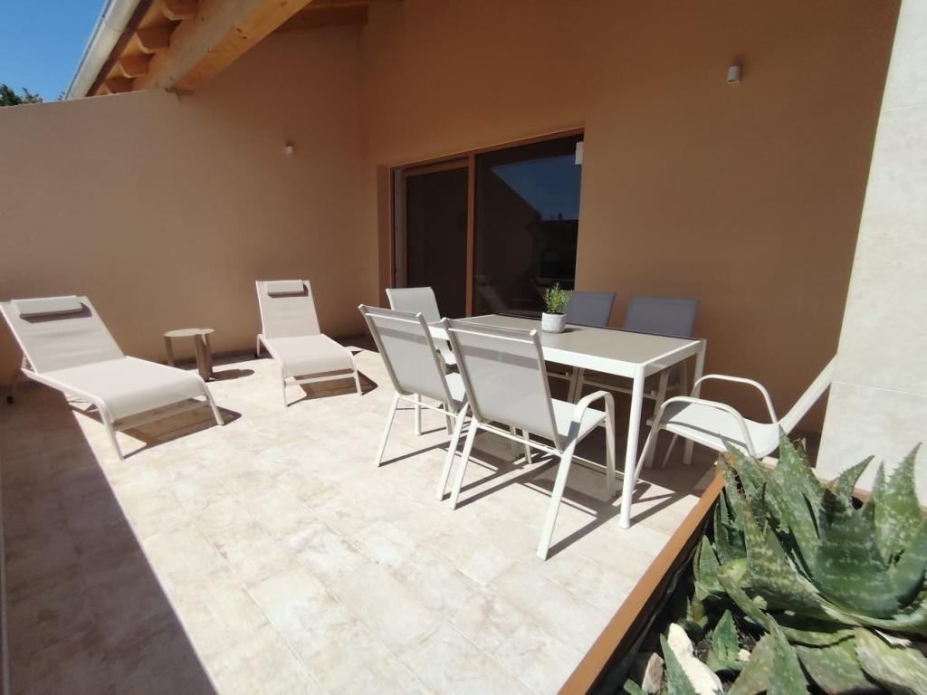 Nově postavený dvoupatrový rekreační dům s bazénem a dvěma samostatnými bytovými jednotkami (přízemí a první patro). Každá bytová jednotka má rozlohu 90 metrů čtverečních a je vybavena 3 ložnicemi, kuchyní, koupelnou, terasou a obývacím pokojem. Parkování je zajištěno.
