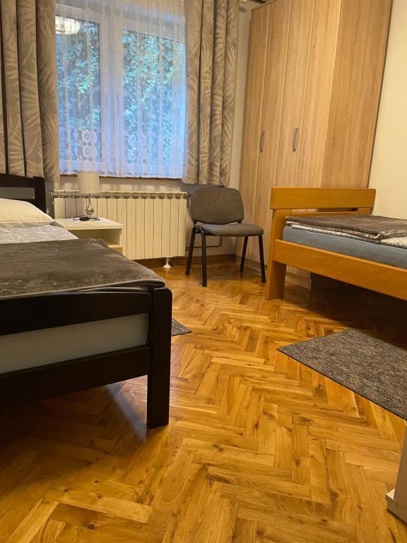 Byt je v soukromém domě se samostatným vchodem. Nachází se v přízemí a pohodlně se zde ubytují až 4 osoby. Parkovací místo je před apartmánem a je zdarma. Na cca 50 m2 se nachází: dvě ložnice (dvě samostatné postele 90x200 cm v jedné ložnici a manželská postel 160x200 cm ve druhém pokoji), obývací pokoj s rozkládací pohovkou, jídelna s plně vybavenou kuchyní, koupelna se sprchou a pračkou a terasou. V obývacím pokoji je klimatizace a TV a v celém apartmánu je k dispozici bezplatné Wi-Fi.