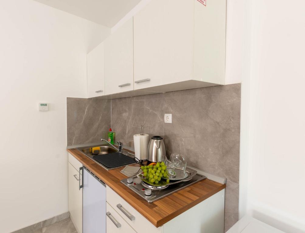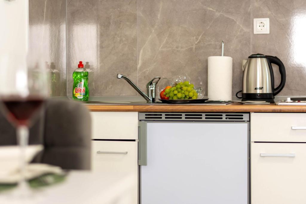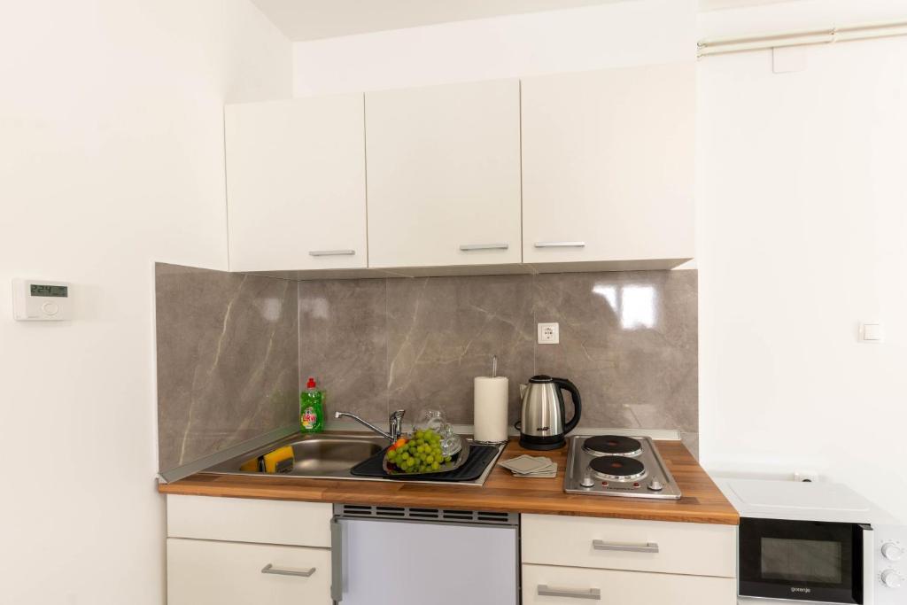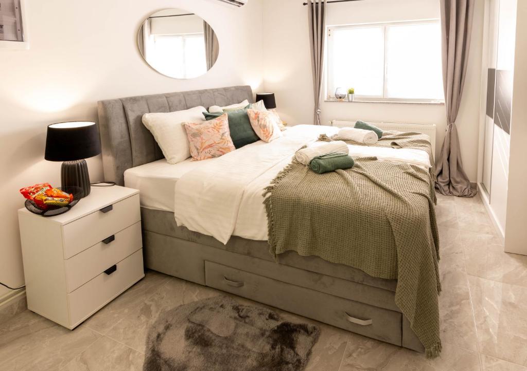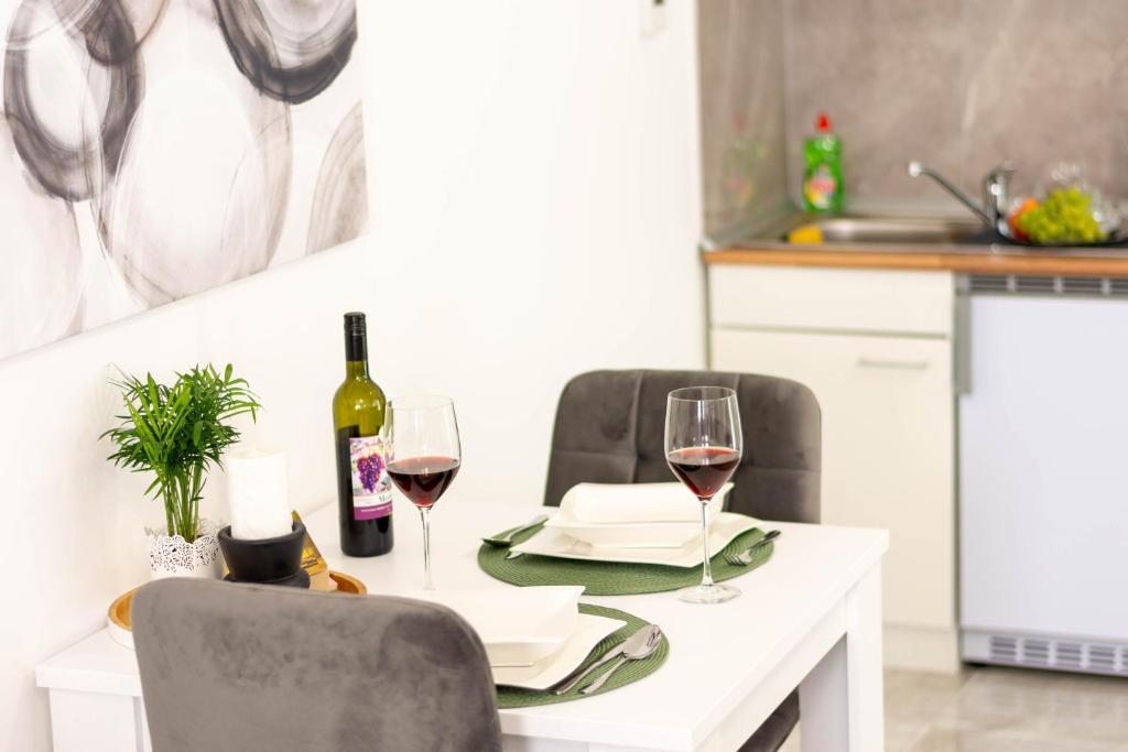 Dům se skládá ze dvou studio apartmánů. Každý studiový apartmán obsahuje 1 ložnici s plně vybavenou kuchyní, 1 koupelnu, ložní prádlo, ručníky, mýdla, sprchové gely, šampony, TV s plochou obrazovkou, společnou terasu pro vychutnávání kávy s velkou zahradou. Byt se nachází v klidné ulici cca 500 m od centra města a je zasunutý na pozemku. Vnitroblok a velká zahrada oddělují byt od cesty, což umožňuje klidný pobyt v bytě i na terase. Ve dvoře je parkoviště pro osobní auta.