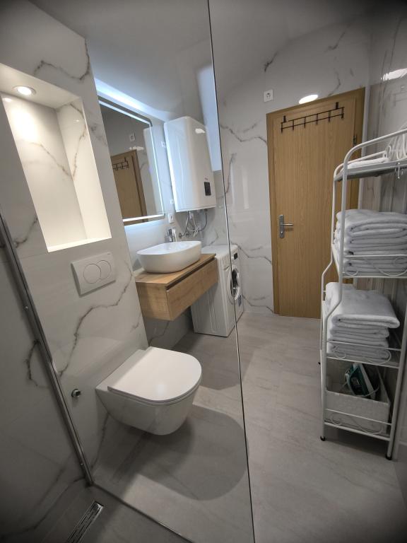 Apartmán Dreams of Bol se nachází v Bolu na ostrově Brač. Je to 10 minut chůze od centra a nachází se v klidném prostředí. Apartmán má vlastní parkovací místo, ničím nerušený výhled na ostrov Hvar, slavnou pláž Zlatni rat a nejvyšší vrchol dalmatských ostrovů, Vidovu goru (778 m). Pouhých 50 metrů pod ubytovacím zařízením se nachází restaurace, 2 supermarkety, pizzerie a zastávka turistického vláčku, který jede na pláž Zlatni Rat. Tento apartmán nabízí dvě ložnice, jednu s manželskou postelí a druhou s oddělenými lůžky, která lze na požádání spojit. V obývacím pokoji je pohovka, kterou lze rozložit na pohodlné lůžko pro 1 až 2 osoby. Kromě toho nabízíme plně vybavenou kuchyň, koupelnu s pračkou a prostornou terasu (chráněnou před výhledem) s venkovním stolem, pohodlnými lehátky a vířivkou. Apartmán je klimatizovaný, se dvěma klimatizačními jednotkami v obývacím pokoji a jedné ložnici, Wi-Fi připojením a LED TV. Máme také další prostor pro úschovu kol. Jednorázový úklid 50 €