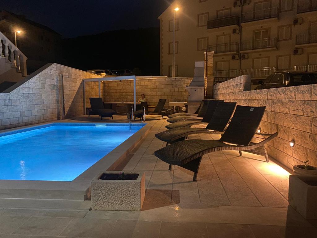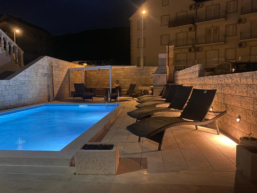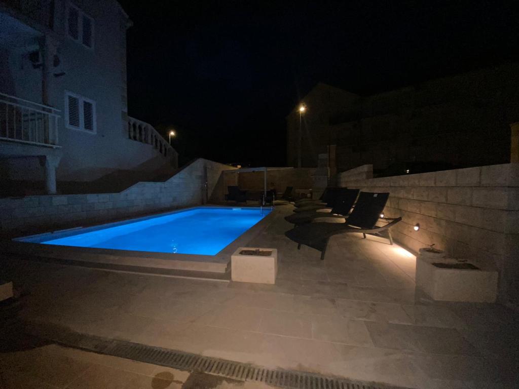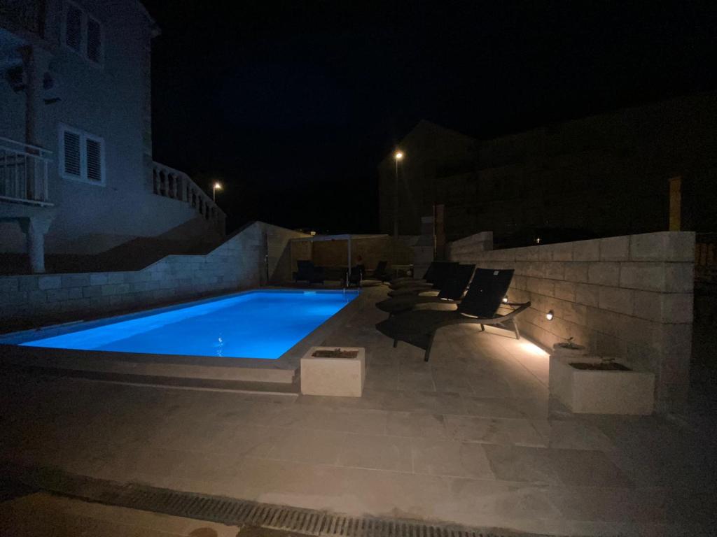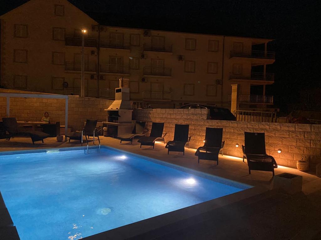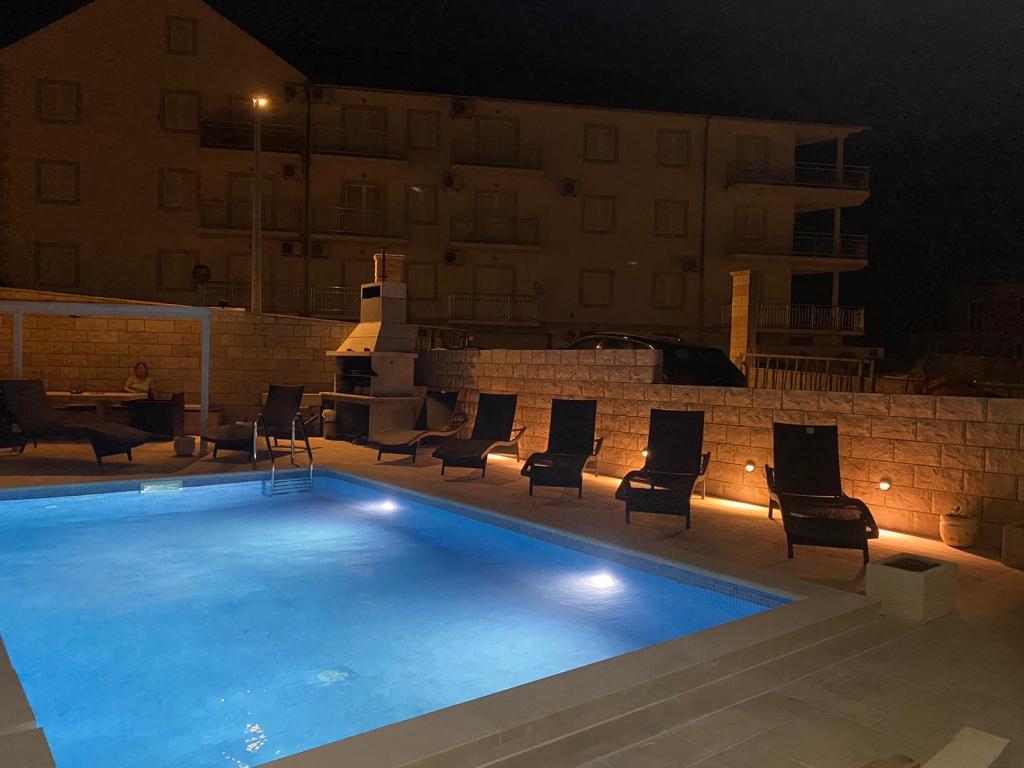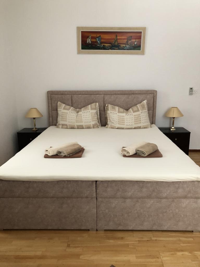 Plně vybavené a moderní apartmány v Bol, 100 m od centra a 200 m od první pláže. Apartmán Lux má dvě oddělené ložnice, dvě koupelny, dvě terasy (jedna s výhledem na moře), velká kuchyně, jídelna, klimatizace, TV, satelit, internet zdarma. Před domem je zahrada a gril pro vás ve službách.