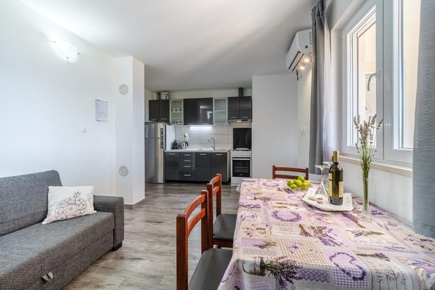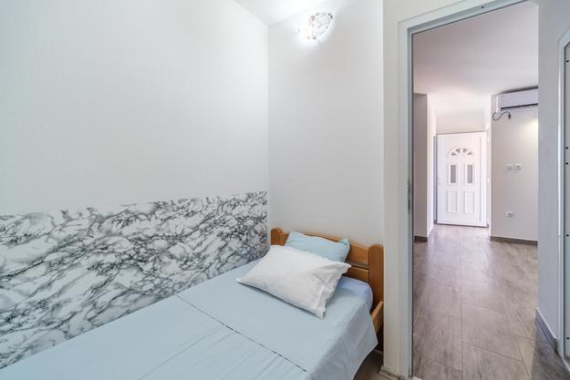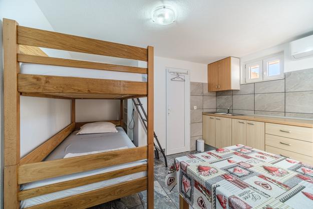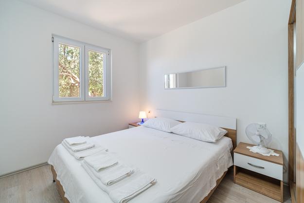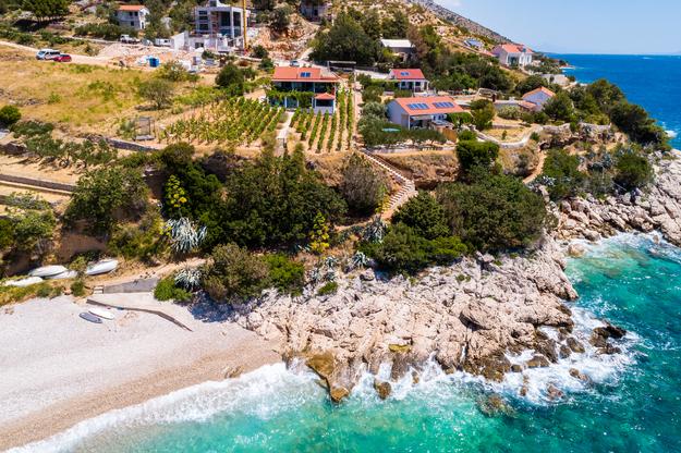 Jedinečný byt. 20 metrů od moře. Soukromé parkoviště (2 auta) a soukromý vstup na pláž, která je vzdálená 50 metrů. Apartmán je jediný s klimatizací v této zátoce a hosté mohou využívat bezplatné Wi-Fi, 2 elektrokola a 2 SUP - Na terase je také venkovní sprcha s výhledem na moře. Tento inzerát zahrnuje 2 samostatné byty - zahrnuto v ceně. První je větší apartmán o velikosti 40 m2 se dvěma ložnicemi (1 manželská postel, 1 samostatné lůžko a rozkládací gauč pro jednoho dospělého nebo dvě mladší děti), kuchyní, koupelnou a obývacím pokojem. Druhým je studio v suterénu (cca 10 m2) s patrovou postelí, koupelnou a přistýlkou. Apartmány byly nově postaveny v roce 2018. Byty jsou zcela soběstačné a napájené solárními panely. Byt je propojen s dalším identickým bytem, který naše rodina využívá a který není pronajímán. Budete jediní hosté a budete mít samostatný vstup na pláž. Pláž Vela Farske je mírně zaříznutá a jedna ze vzácných perel ostrova Brač.