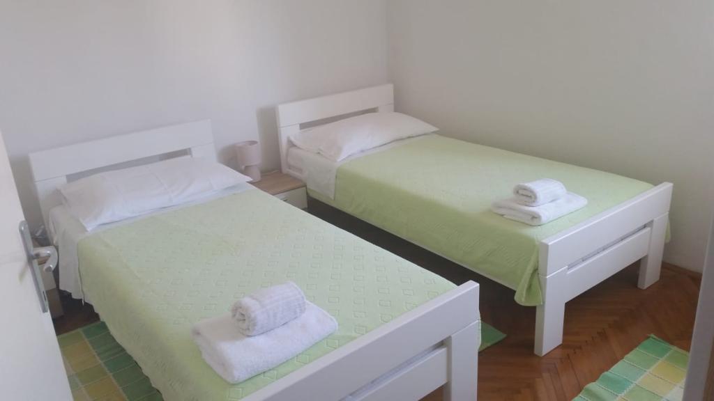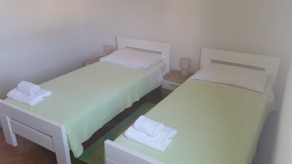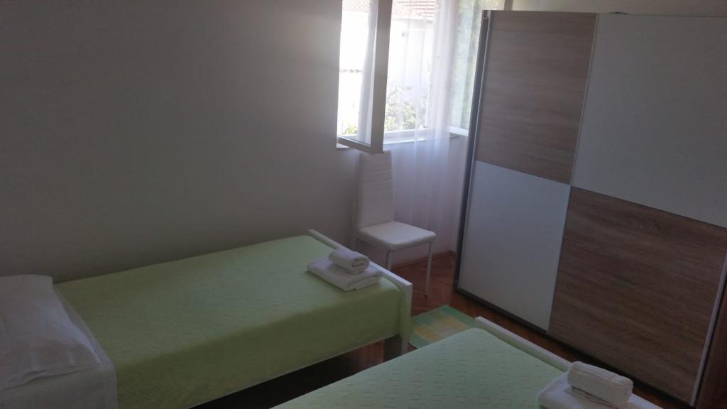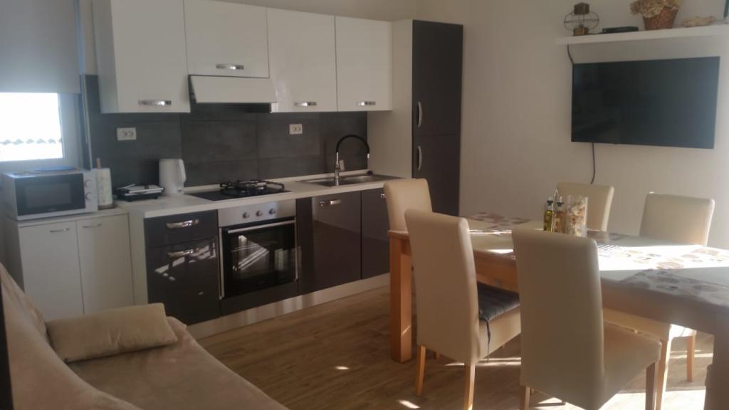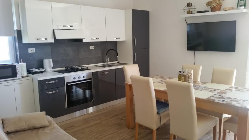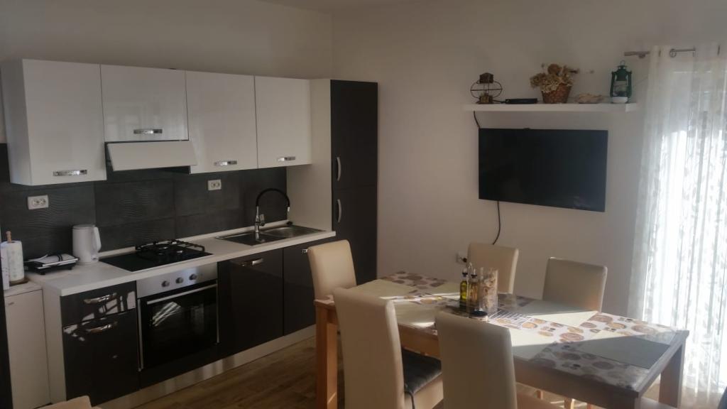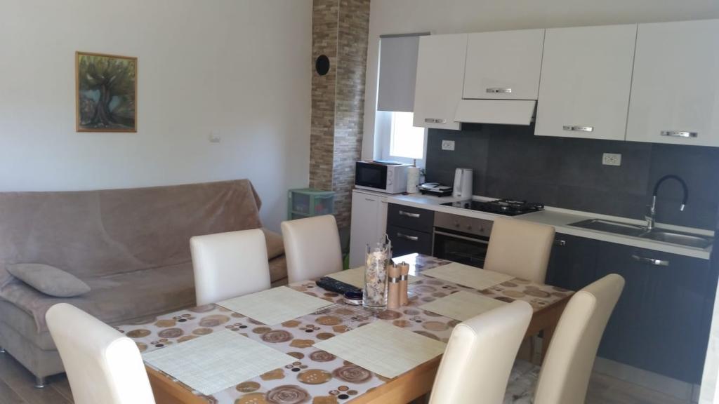 Byt se nachází v Brbinj na Dugi otok, 10 metrů od moře, v 1. patře a má terasu s výhledem na moře a západ slunce. V blízkosti bytu jsou dvě restaurace. Ubytování je vzdálené 3 minuty chůze od přístavu trajektů. Byt se skládá z kuchyně s obývacím pokojem, tří ložnic, koupelny, další toalety a terasy. Byt je plně vybavený a klimatizovaný. Kuchyň je moderní a nová, je vybavena myčkou, sporákem, troubou, lednicí s mrazákem a mikrovlnkou. Jídelna je prostorná s velkým jídelním stolem a pohovkou a vstupem na terasu. V prostorné předsíni je velká šatní skříň, nově zrekonstruovaná koupelna se sprchovým koutem a tři pokoje, které jsou prostorné a vybavené. Možnost využití zastřešeného grilu na zahradě. . Koupat se můžete přímo před apartmánem. Na všechny ostatní krásné pláže Dugi otok se autem dostanete za 10-15 minut. Parkovat lze před domem.