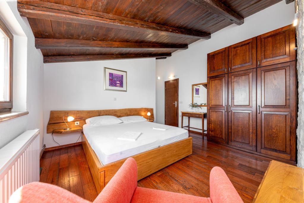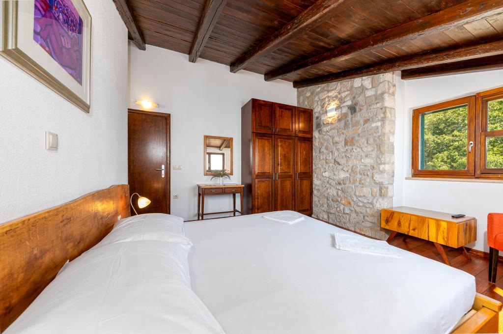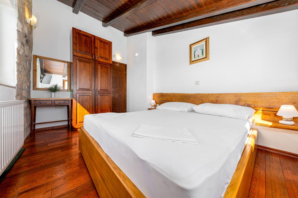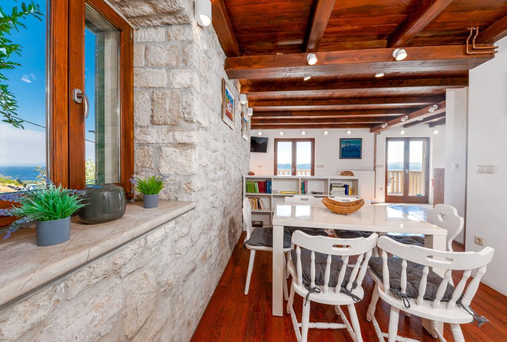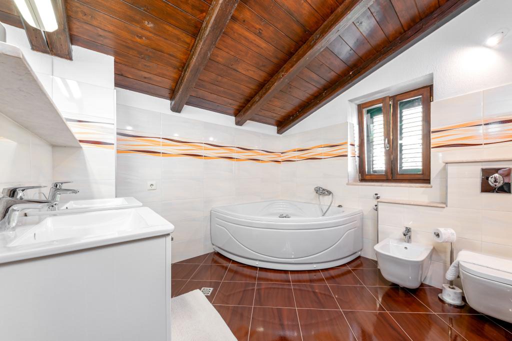 Vítejte v našem prostorném a okouzlujícím apartmánu, který se nachází v soukromém domě s celkem třemi apartmány - ideální volba pro klidnou a relaxační dovolenou v pravém dalmatském prostředí. Apartmán o rozloze 115 m² nabízí vše, co potřebujete pro příjemný pobyt. Skládá se ze dvou pohodlných ložnic, plně vybavené kuchyně propojené s prostorným obývacím pokojem, dvou koupelen (jedna z nich má hydromasážní vanu) a další samostatné toalety. Rustikální dekorace a pečlivě vybrané detaily vytvářejí vřelou atmosféru a autentickou dalmatskou atmosféru. Dům se nachází na kaskádovitém terénu a schody vedou ke společnému bazénu. Bazén se nachází na prostorné terase vybavené lehátky a slunečníky, ideální pro opalování a kochání se výhledem. Vzhledem ke schodům a konfiguraci terénu není apartmán vhodný pro osoby se zdravotním postižením nebo osoby se sníženou pohyblivostí. Soukromé parkování je k dispozici hned vedle domu (což je v letních měsících velkou výhodou). Těšíme se na váš příjezd!