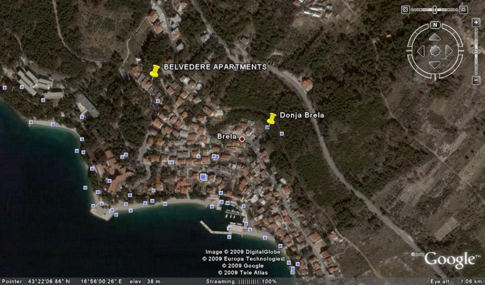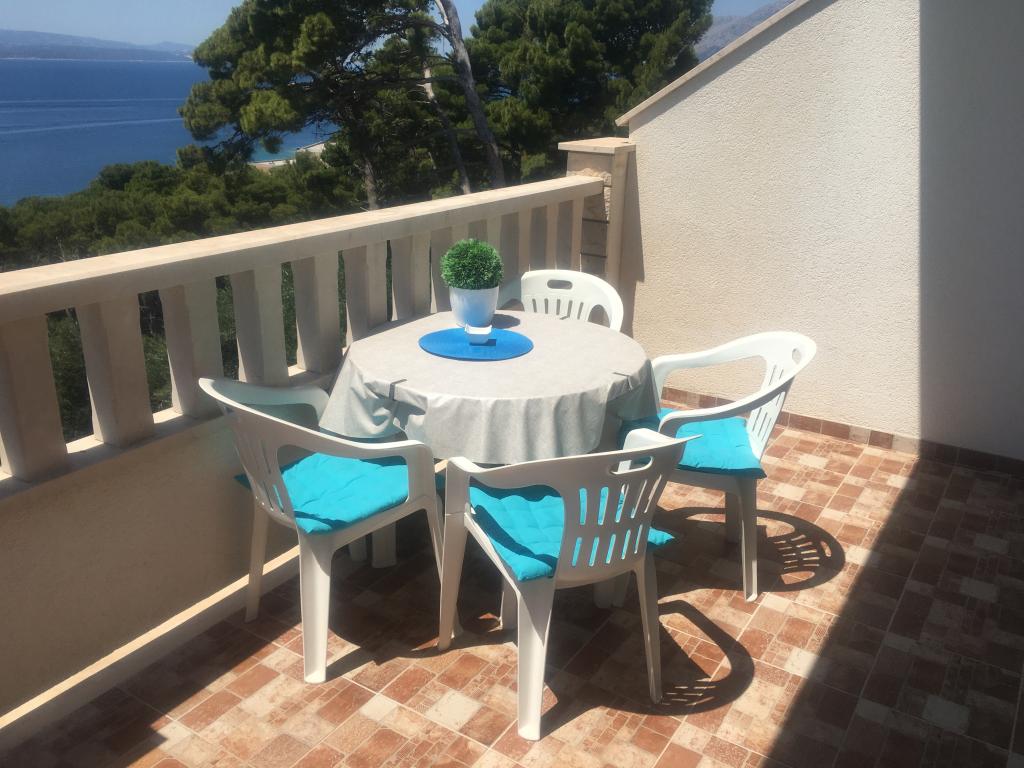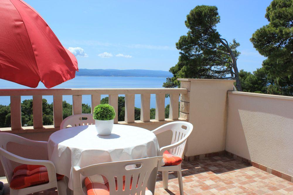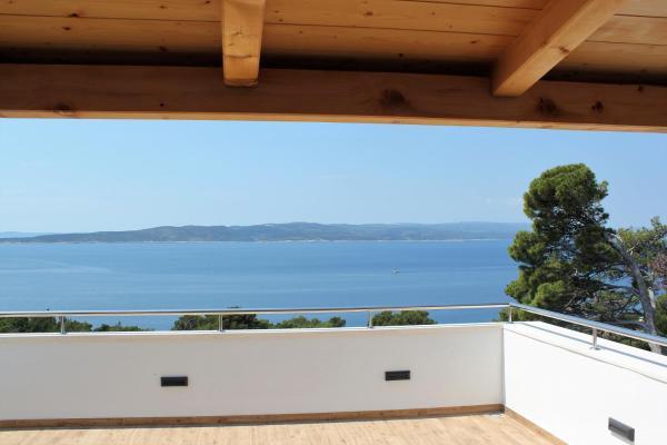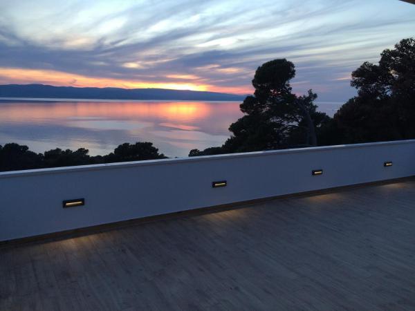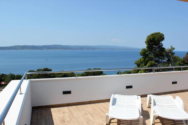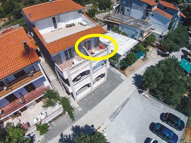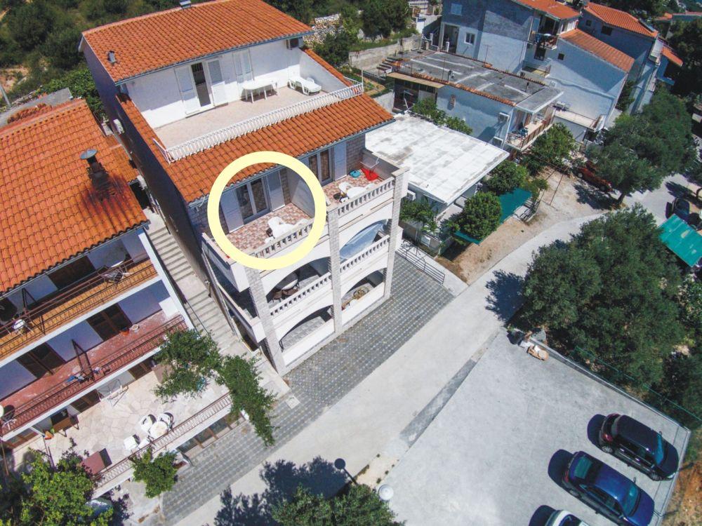 Budova se nachází ve velmi klidné (slepé) ulici, kde není žádný provoz (pouze auta patřící hostům a majitelům budovy) a nabízí nádherný výhled na borový les, moře a nedaleký ostrov Brač. Vzdálenost od hlavní pláže a centra města je cca 300 m. Naše parkoviště je zajištěno před budovou.