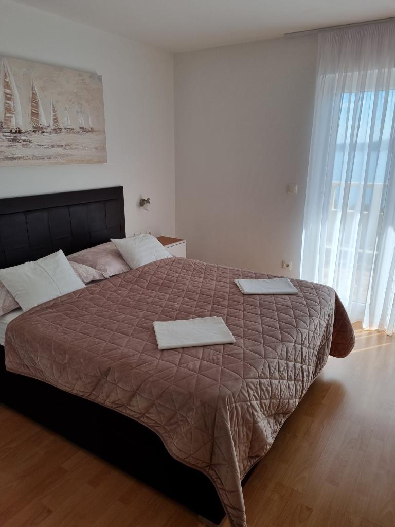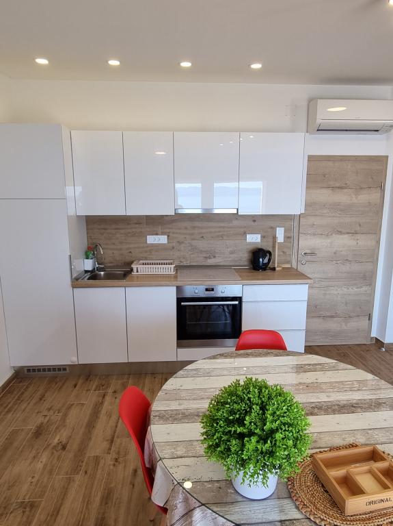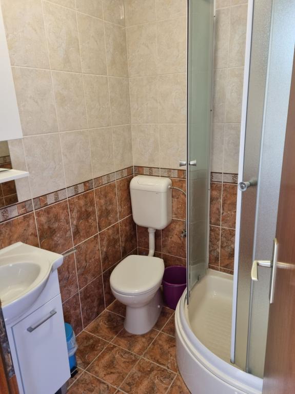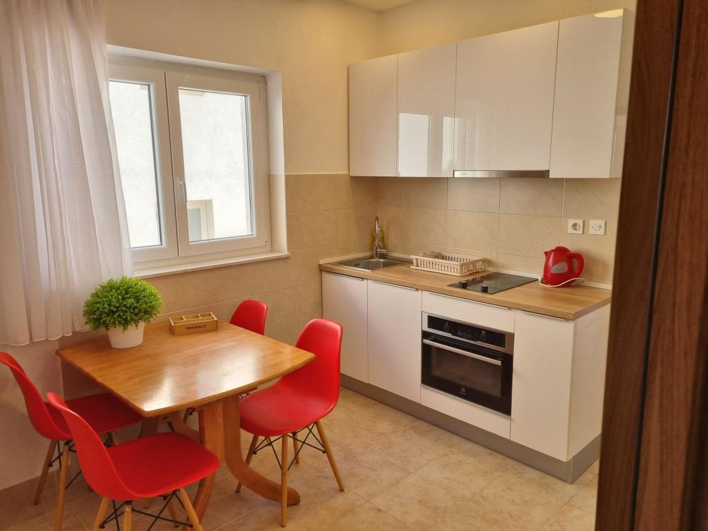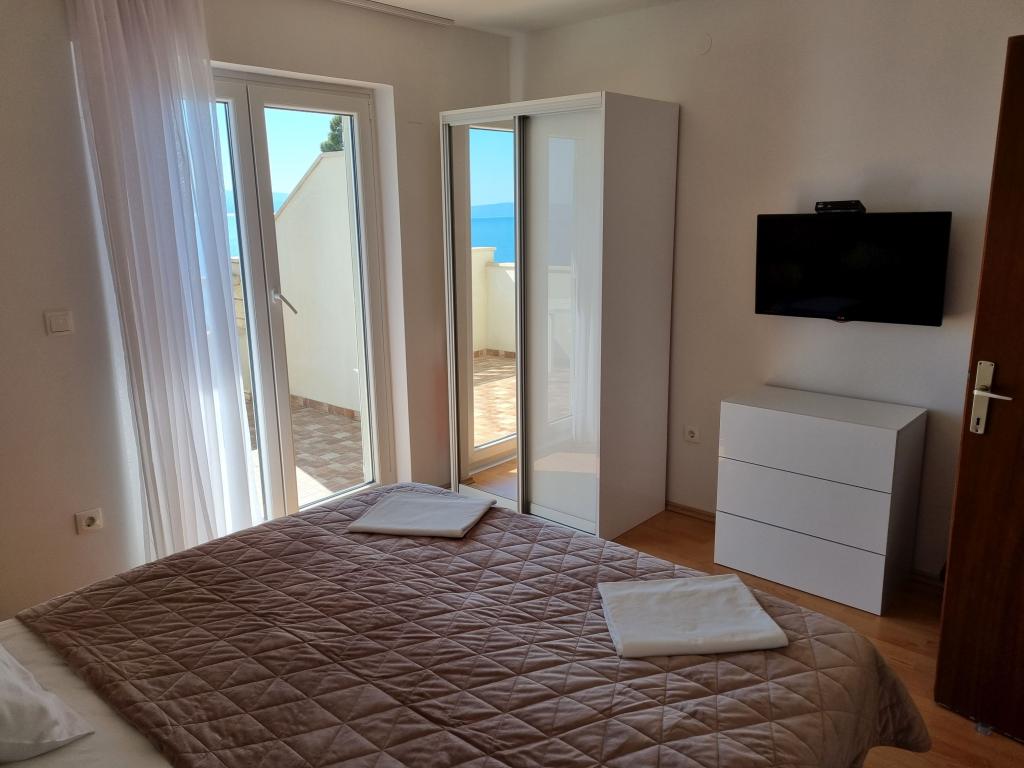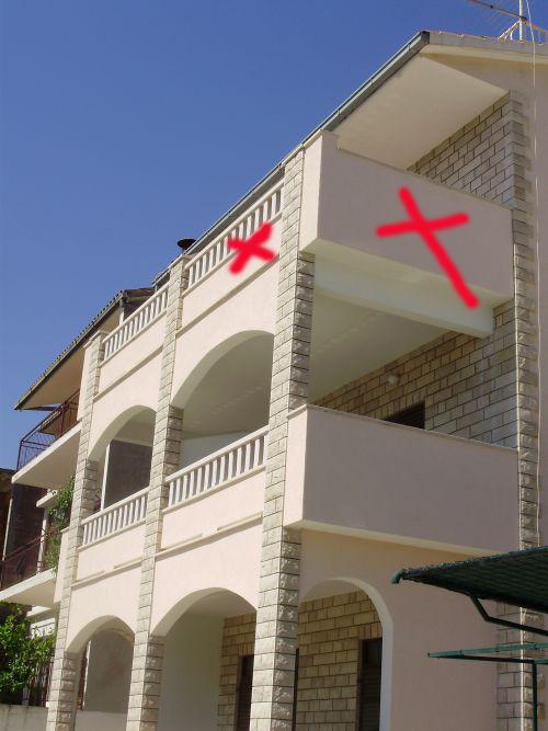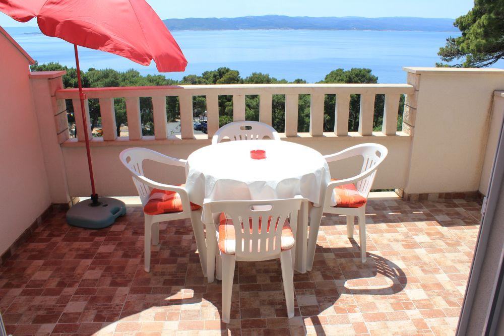 Budova se nachází ve velmi klidné (slepé) ulici, kde není žádný provoz (pouze auta patřící hostům a majitelům budovy) a nabízí nádherný výhled na borový les, moře a nedaleký ostrov Brač. Vzdálenost od hlavní pláže a centra města je cca 300 m. Naše parkoviště je zajištěno před budovou.