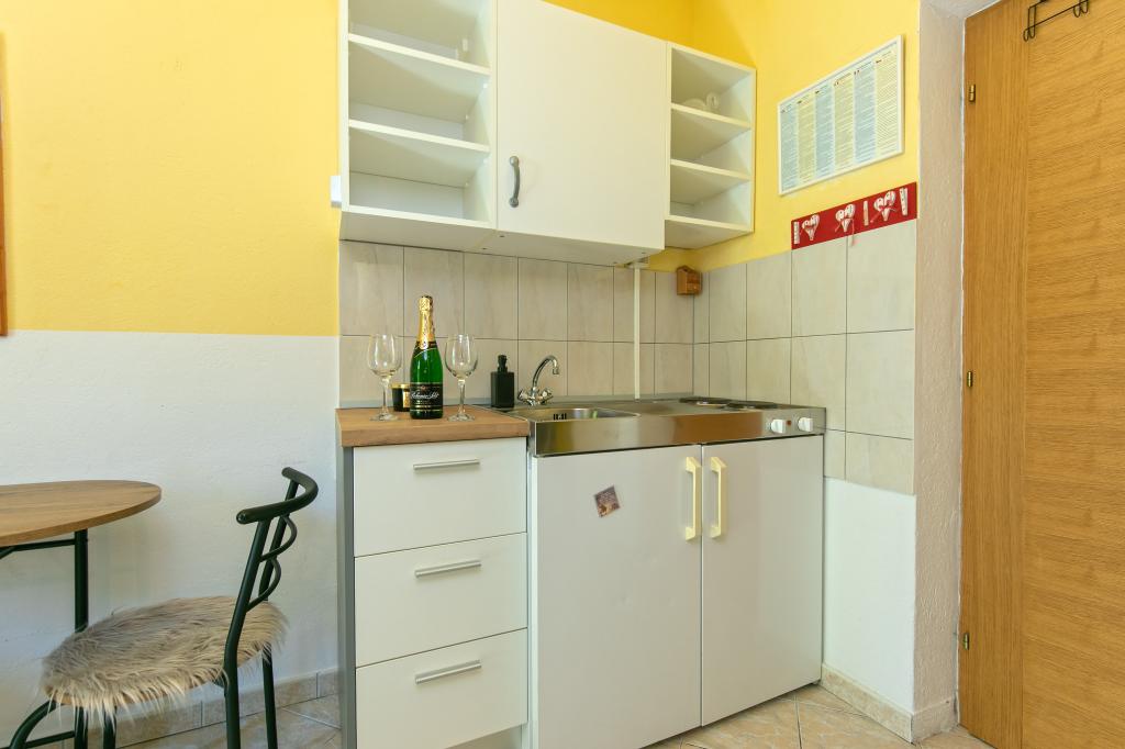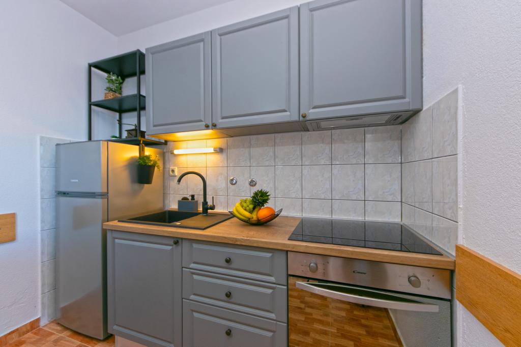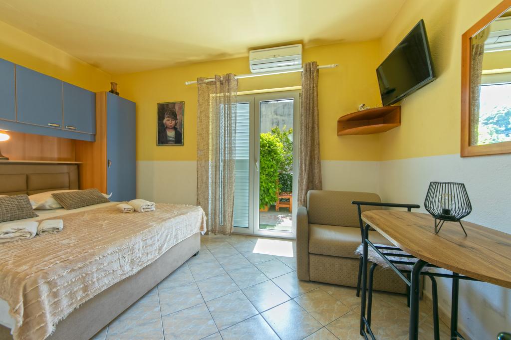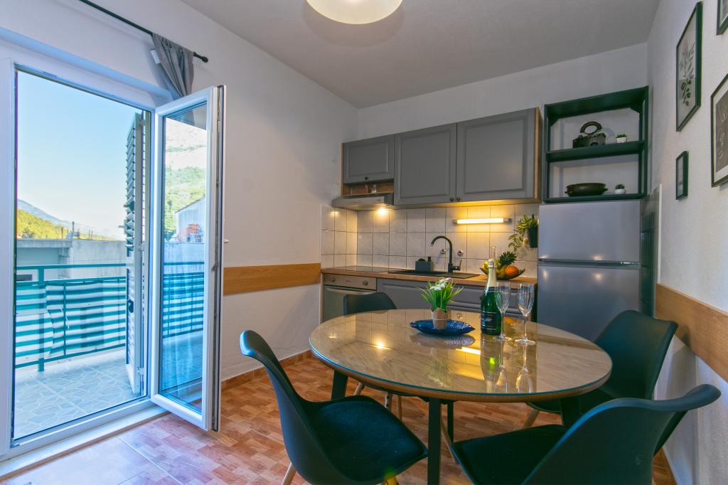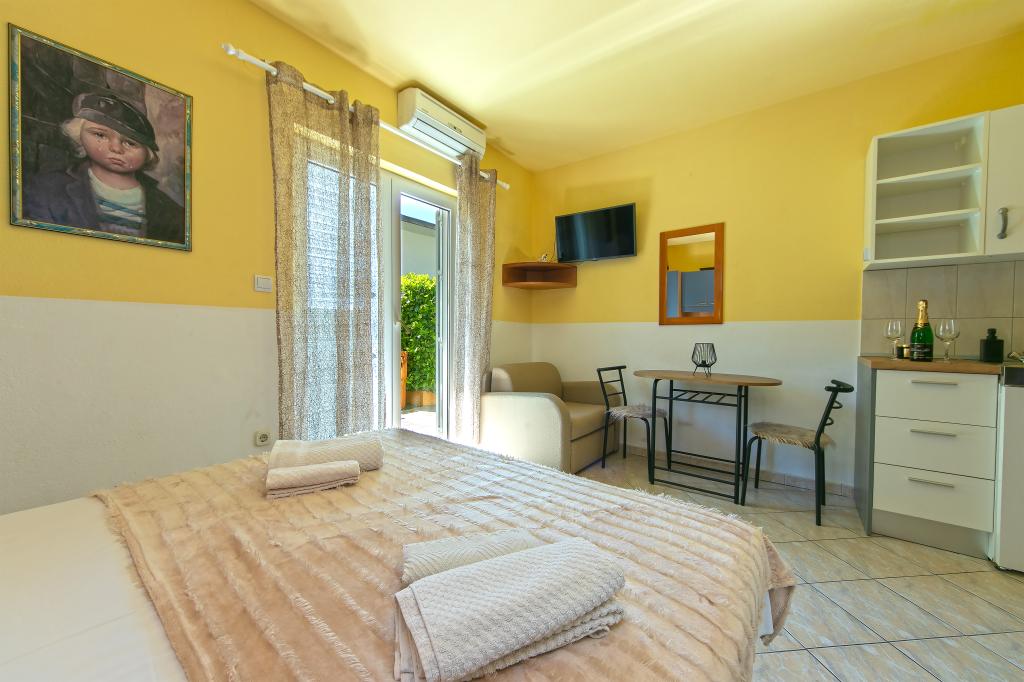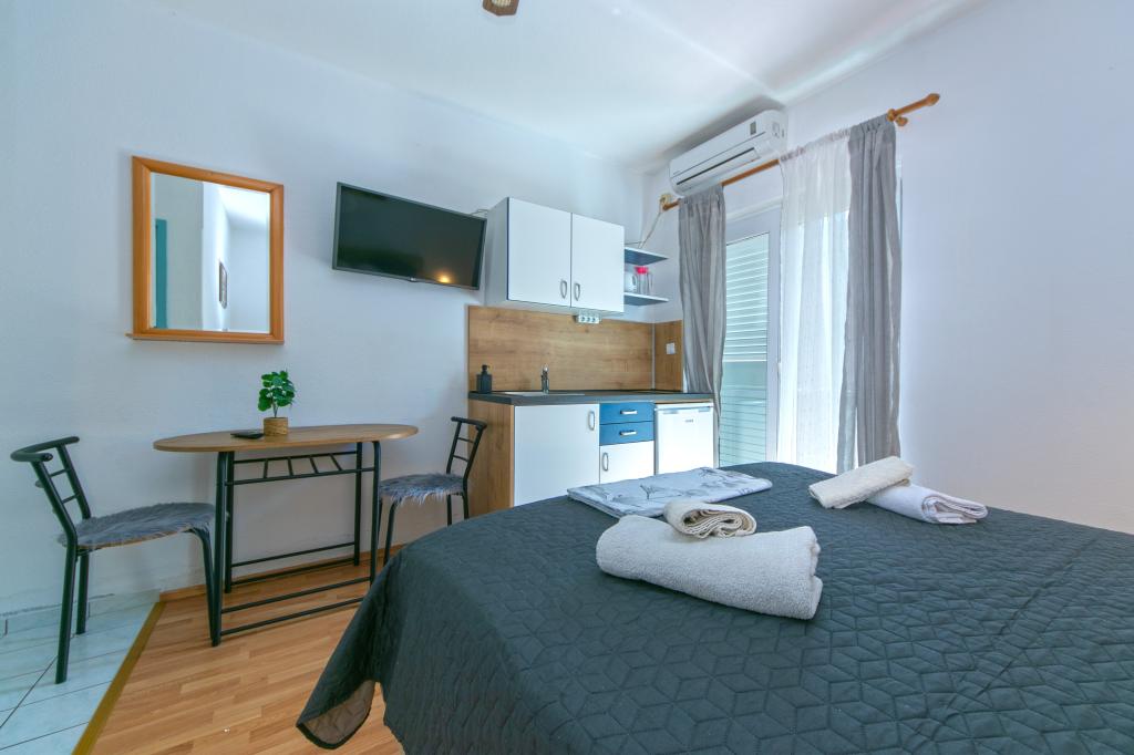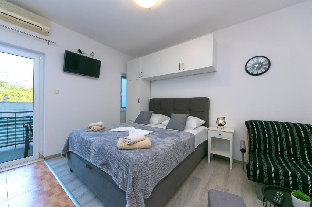 Apartmány Hrvoje se nacházejí na vyvýšeném místě v klidné části ulice Stomarica. Vzdálenost od oblázkové pláže je cca 3 min. pěšky nebo 150 m. Na jedné straně domu je výhled na moře a druhý má výhled na horu Biokovo. Nabídka rodiny Jelčić je kvalitní a hosté mohou plně relaxovat v apartmánech a strávit nezapomenutelnou dovolenou. Apartmány uspokojí všechny hosty, kteří chtějí strávit příjemnou dovolenou. Nabídka ubytování zahrnuje apartmány vybavené kuchyňkou, ložnicí, klimatizací, satelitní TV, koupelnou a balkonem. Za domem se nachází zahradní terasa se stoly, kde si hosté mohou odpočinout a zároveň se těší klidné atmosféře s výhledem na moře. K dispozici je také venkovní gril, ale přátelská dáma. Jelcic jim rád pomůže. Parkování je zajištěno.