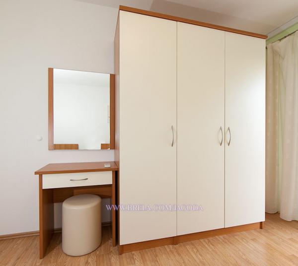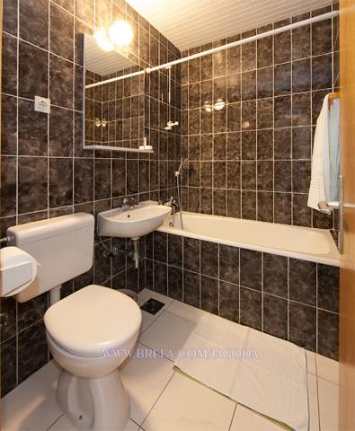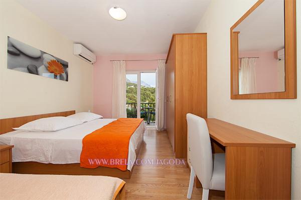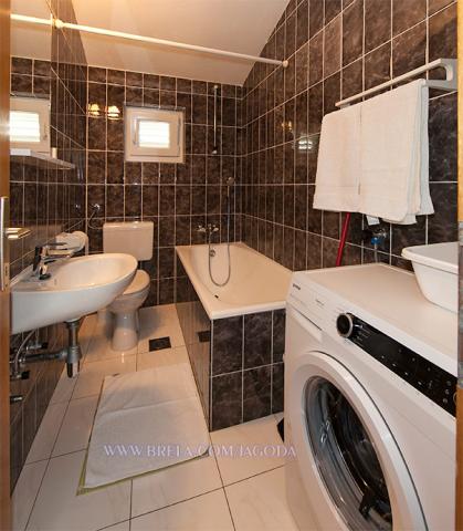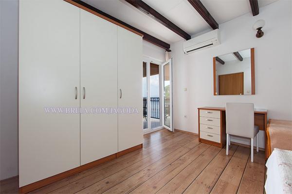 Apartmány Jagoda Klarić se nachází v klidné části Brela (Stomarica) kilometr a půl od centra města. Na jedné straně je výhled na moře, a druhá má výhled na horském svahu. Nejbližší supermarket je cca 300 m, a vzdálenost od pláže, která je asi 2 minuty chůze (80 m). Ubytování se skládá z: Apartmán 1: 60m² 20m² Bakon / terasa, 1 třílůžkový pokoj s balkonem (v přízemí), 1 třílůžkový pokoj s balkonem (v 1. patře), 2 koupelny s WC, plně vybavená kuchyň s jídelnou, velká terasa s výhledem na moře. Maximální kapacita pro 6 osob. Apartmán 2 / (Na 2 patro): 65m² 15m² balkon / terasa, 1 dvoulůžkový pokoj s balkonem, 2 koupelny s WC, jeden třílůžkový pokoj s balkonem, plně vybavená kuchyň, jídelna / obývací pokoj s pohovkou a balkonem, všechny pokoje s balkonem jsou s výhledem na moře. Maximální kapacita pro 6 osob.