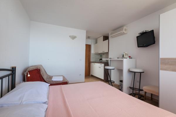 Doporučuji apartmán Lela. Má pokoj s kuchyňským koutem a plně vybavenou koupelnou. Z balkonu je výhled na moře. Je blízko pláže a lokalita je skvělá. Majitelé jsou velmi přátelští.