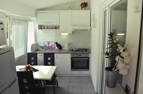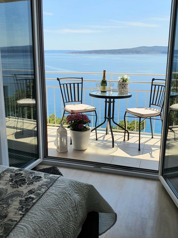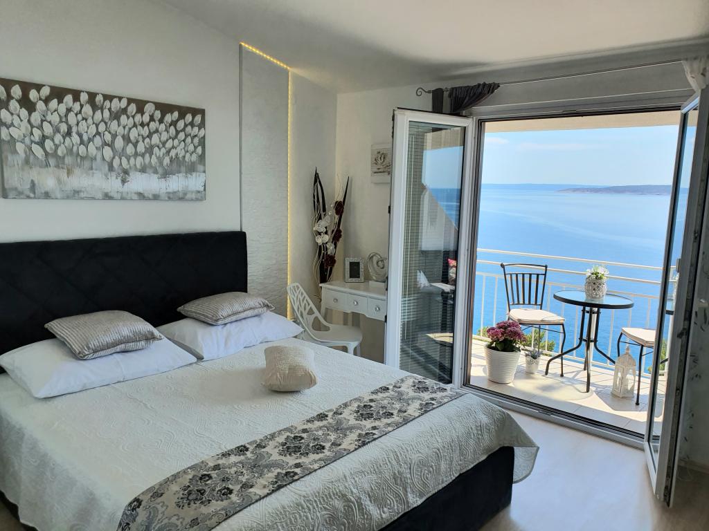 V apartmánu jsme byli v první půlce června, fotky naprosto odpovídají, výhled na moře i ze spodního apartmánů je nádherný a k mnoha menším pláži je to opravdu pár minut, k té nejbližší tak 2 Hostitelé jsou velmi milí, komunikace probíhá s rodilou Slovenkou, která zde bydlí. Kuchyň vybavena velmi dobře, nechybělo nám nic, čisté pokoje, kvalitní nábytek i postele, obě koupelny čisté a bez problémů. Jediné dvě možné nevýhody: koupelny se musí větrat směrem k předsíni a ložnici a v zadní části přízemí bydlí staří rodiče (velmi milí!), přičemž izolace není úplně dokonalá - týká se ovšem primárně koupelen a předsíně s kuchyní