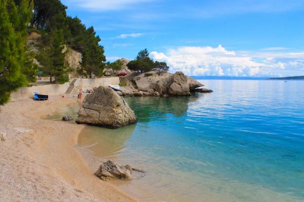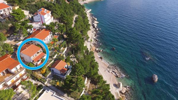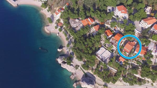 Apartmány v klidné části Brely, pouze 40 m od pláže. V blízkosti se nacházejí dvě restaurace. Malý trh 300 metrů od bytu, centrum 2 km. Po celou dobu Brela se nachází podél pobřeží, které nemají řídit auta. Vhodné pro děti a seniory. ,