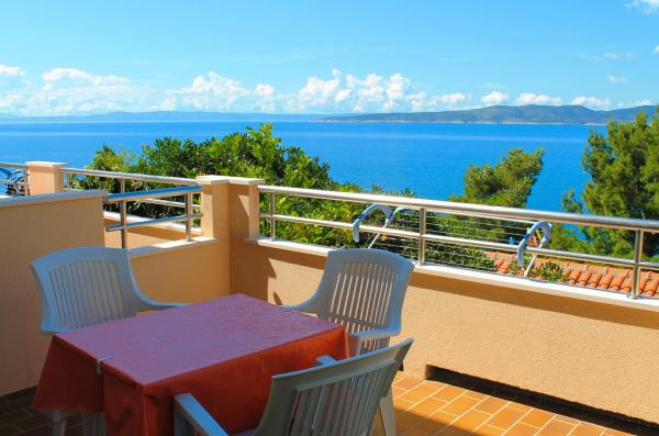 Přijeli jsme z dovolené a hned píšeme recenzi. Pokoj: vše odpovídá fotografii. Pokoj je prostorný, čistý, světlý. Malá kuchyňka se vším kuchyňským náčiním a nádobím. Lednička, mikrovlnná trouba, rychlovarná konvice, TV, klimatizace. A výhled z balkonu je nádherný. Bylo velmi příjemné sedět na balkóně večer. Když jsme dorazili, hostitelka nás přivítala a nabídla nám osvěžující nápoje z cesty. Velmi přátelští hostitelé, kteří se postarali o to, abychom se během naší dovolené cítili pohodlně. Samotné apartmány jsou v první řadě, musíte vylézt po schodech. Je to druh každodenního cvičení. Pro starší lidi bude výstup obtížný. Hledali jsme apartmány mimo centrum Brely. Chtěli jsme klid a ten se nám dostal. V této části Brely je klid. Všechno se nám líbilo. Doporučujeme tyto apartmány k relaxaci. A Brelu obecně.