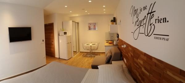 Studio je velmi pěkný a moderní, velmi čisté. Kompletní kuchyňská výbava. V blízkosti pláže a obchodů, klidné lokalitě. Parkování je u domu. Byli jsme s malým dítětem a bylo to fakt super, doporučuji 100%. Hostitelé jsou velmi milí a ochotní.