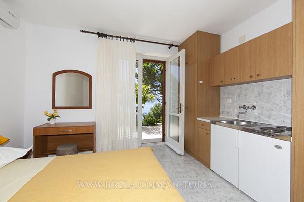 Victoria Apartmány se nachází v klidné části Brela - Jardula, ideální pro relaxaci a únik od shonu. Jsme jen 30-50 metrů od moře. Na pláž se dostanete do části a po schodech. Vzhledem k jeho umístění v první a druhé řadě u moře, apartmány mají výhled na moře a ostrov Brač. Apartmány jsou umístěny v přízemí a prvním patře s balkonem nebo terasom.Svi jsou klimatizované a mají bezplatné Wi-Fi a hostům zajistili parkovací místo. Nabízí dvojí A4 3 kk, zbrusu nový A2 2 byty a apartmány / studia pro 2-3 osoby. Jen pár set metrů od nás jsou kvalitní Vlak a plážové bary.