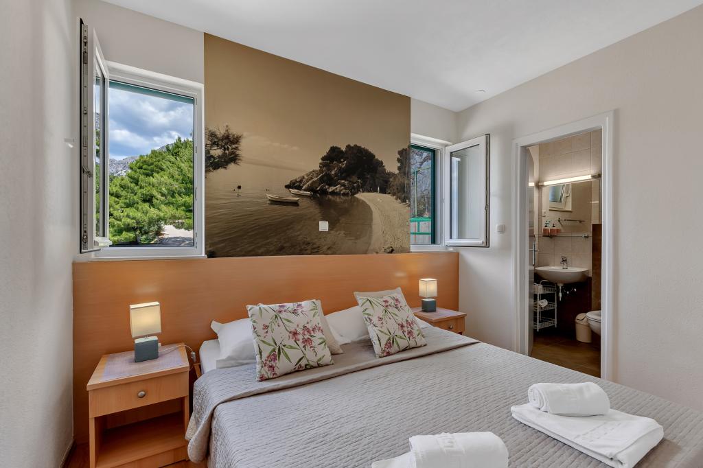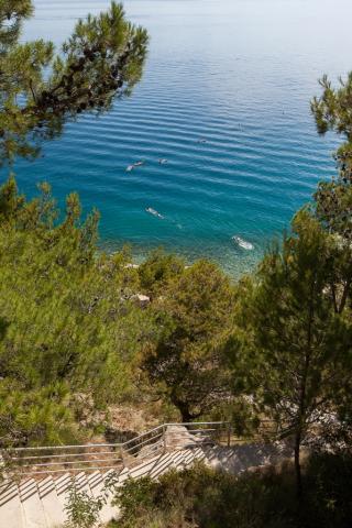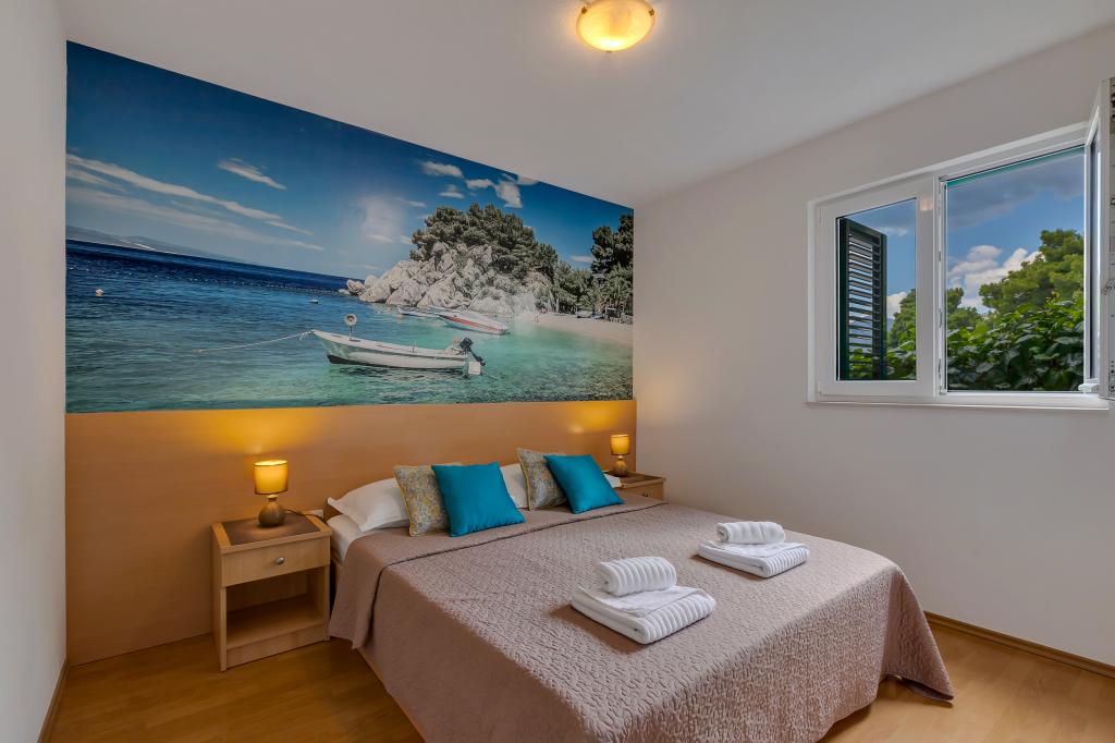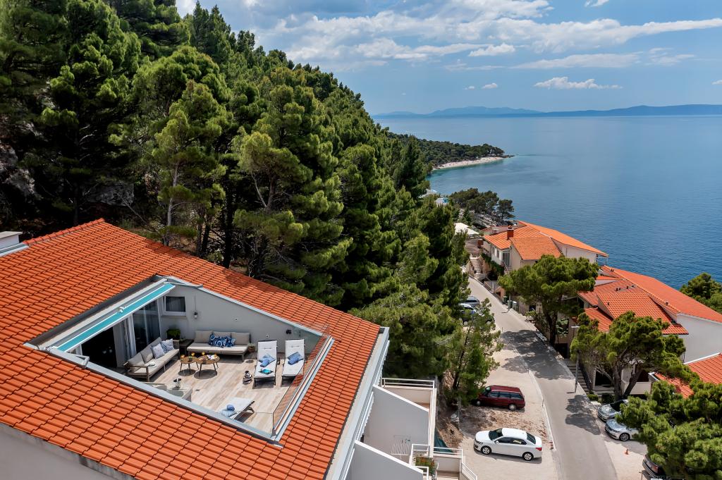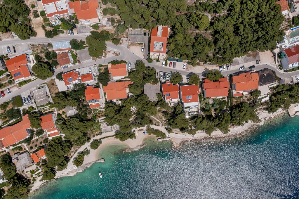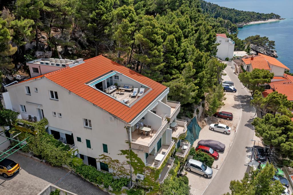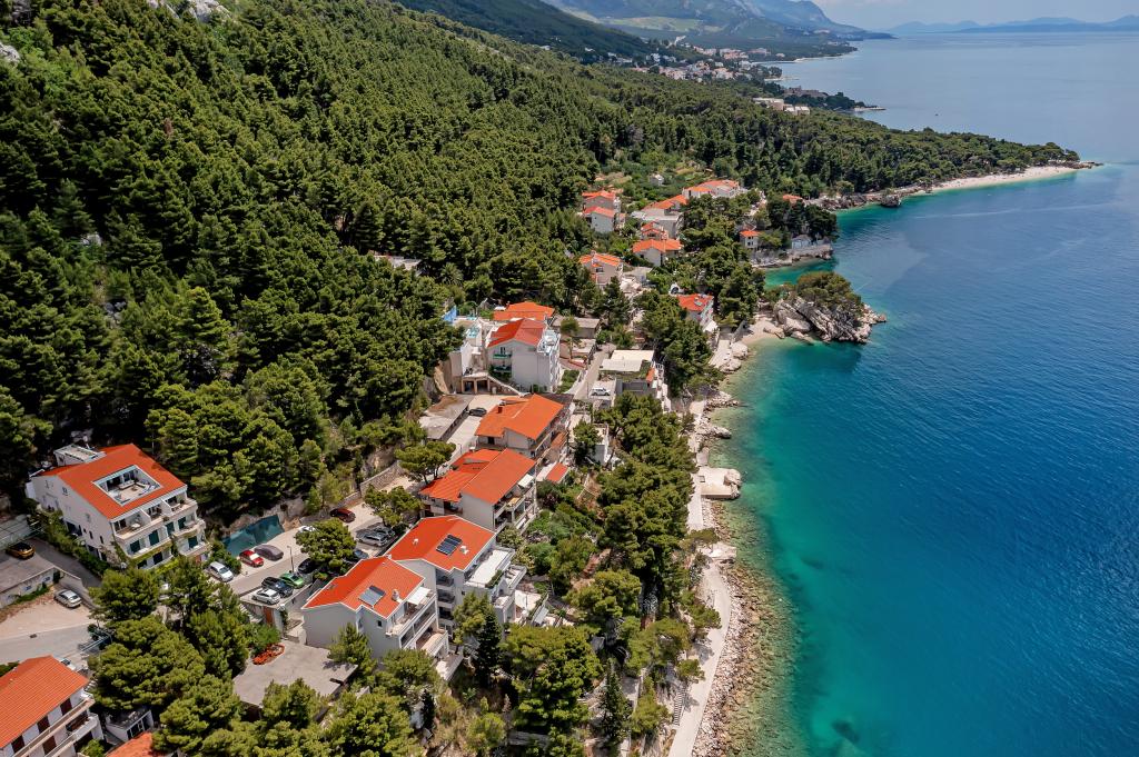 Náš dům se nachází v klidné a zelené části Brely, 50 metrů od moře. Na pláž, která se nachází přímo pod domem, se dostanete po soukromých schodech. Slavná pláž Punta rata se nachází přibližně 500 metrů od domu a do centra města je to asi 10-15 minut chůze krásnou krajinou u moře. Všechny apartmány jsou klimatizované a mají satelitní televizi a připojení k internetu.