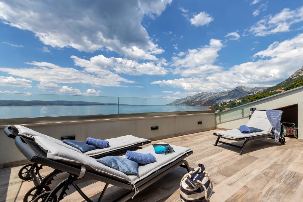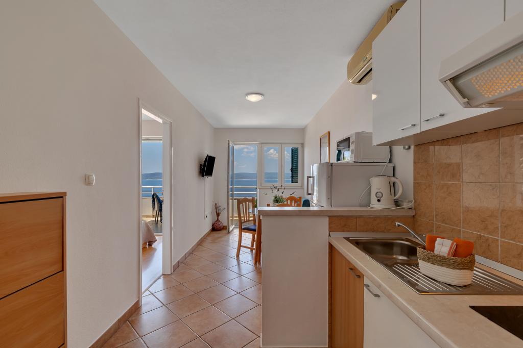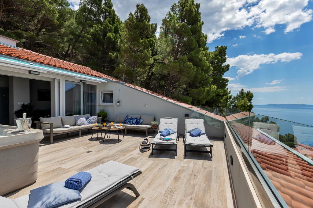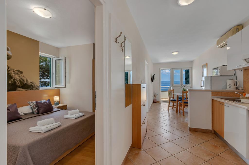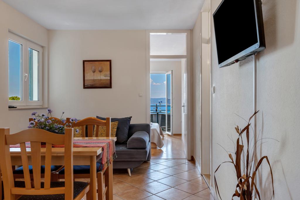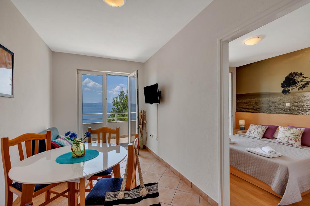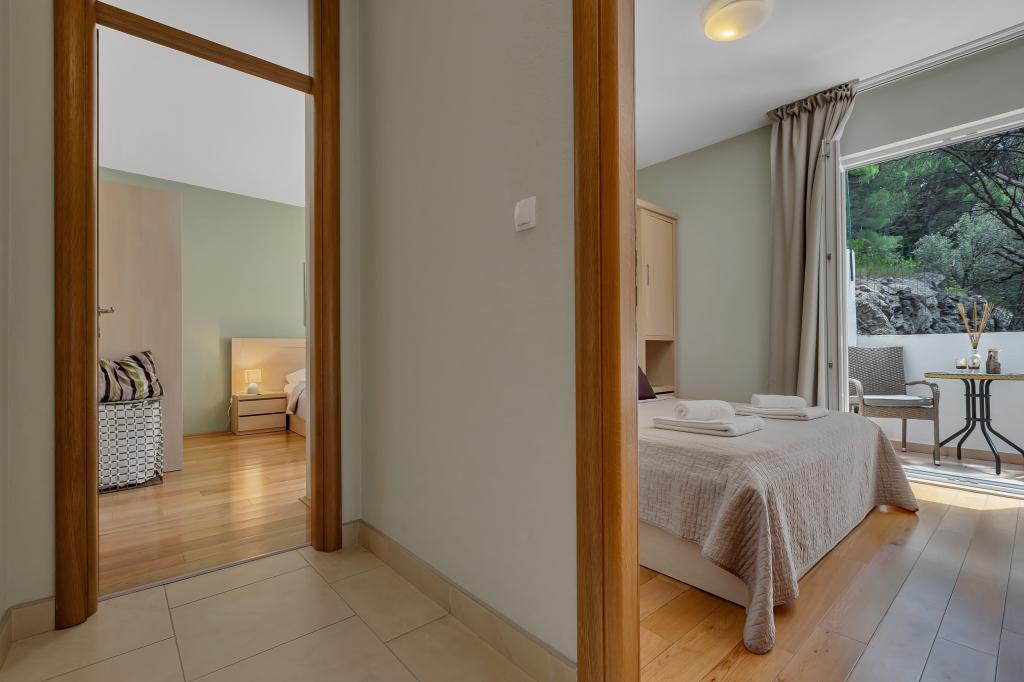 Náš dům se nachází v klidné a zelené části Brely, 50 metrů od moře. Na pláž, která se nachází přímo pod domem, se dostanete po soukromých schodech. Slavná pláž Punta rata se nachází přibližně 500 metrů od domu a do centra města je to asi 10-15 minut chůze krásnou krajinou u moře. Všechny apartmány jsou klimatizované a mají satelitní televizi a připojení k internetu.