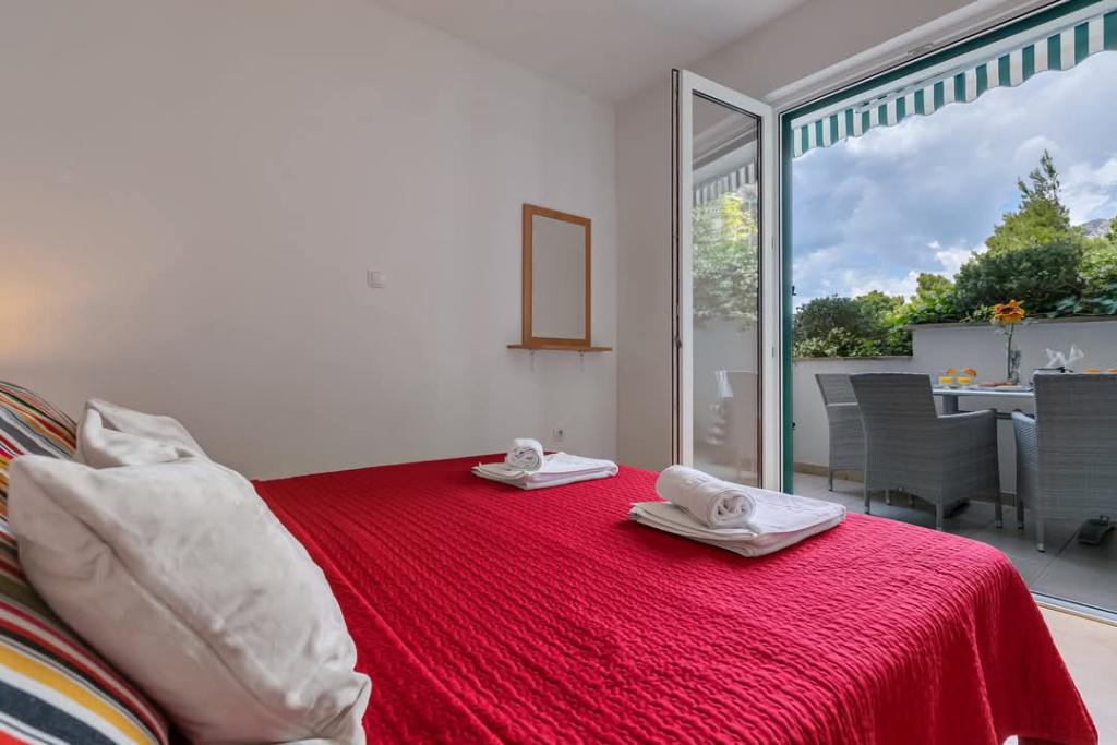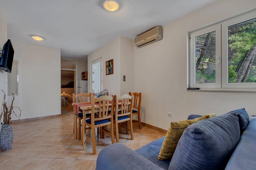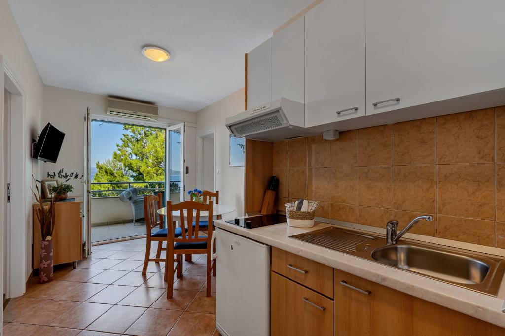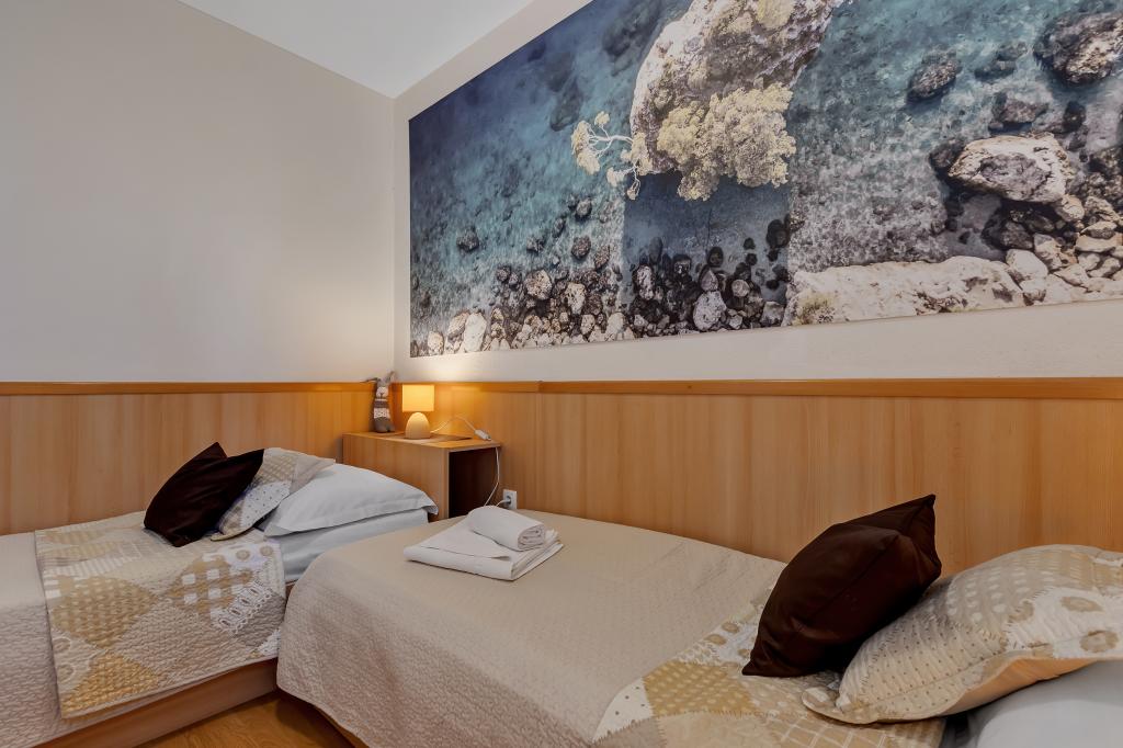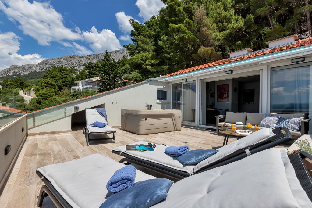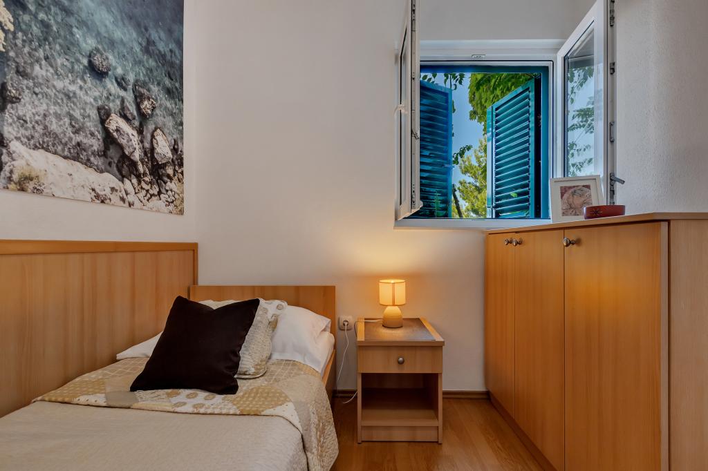 Náš dům se nachází v klidné a zelené části Brely, 50 metrů od moře. Na pláž, která se nachází přímo pod domem, se dostanete po soukromých schodech. Slavná pláž Punta rata se nachází přibližně 500 metrů od domu a do centra města je to asi 10-15 minut chůze krásnou krajinou u moře. Všechny apartmány jsou klimatizované a mají satelitní televizi a připojení k internetu.
