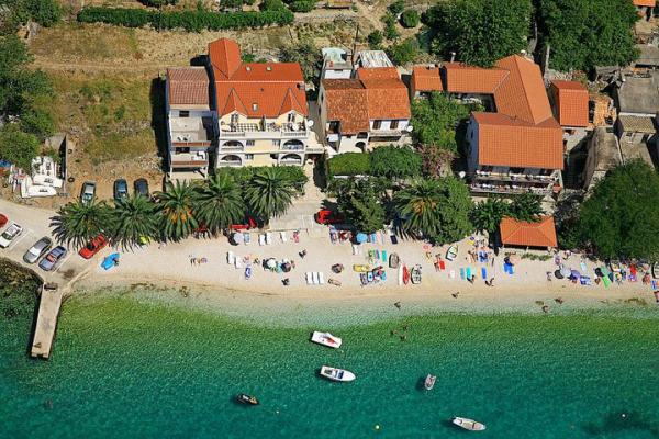 Mezi pevninou a poloostrově Pelješac někdo před staletími zapomenuté kousek ráje. Brist. Malé, klidné a pohostinné místo s několika sty obyvateli, která je od hlavní silnice dolů k moři. Transparentní, jasná a koupala ve slunečním světle. Nad městem jako ochranný val stoupá hrdě svahu s olivovými háji a vzácné divoké zvěře. Ve stínu palem na písečné pláži (lehátka, slunečníky, ..), můžete očekávat, že rodinný brány v Pension Frank, oblečený v kamenné Brač. Dům jako z pohádky, v níž druh a pohostinných lidí od roku 1968 ujaly a hýčkat své hosty. Otevřené ruce a srdce. Převzato dům poslední v Brist (slepé uličky), a také skryté od hluku. To má 10 apartmánů. Dům je terasa s výhledem na Gradec, Hvar a Pelješac. Na terase, přátelští hostitelé své hosty, kteří používají polovinu nebo večeři, kde se podává vynikající dalmatské a středomořské kuchyně. Lízat prsty. Jídlo je připraven opakovaně odměněn olivový olej, které jsou odborníky patří k nejlepším v Dalmácii. S tímto druhem potravy vždy můžete jít na sip domácí brandy a sklenku červeného vína.