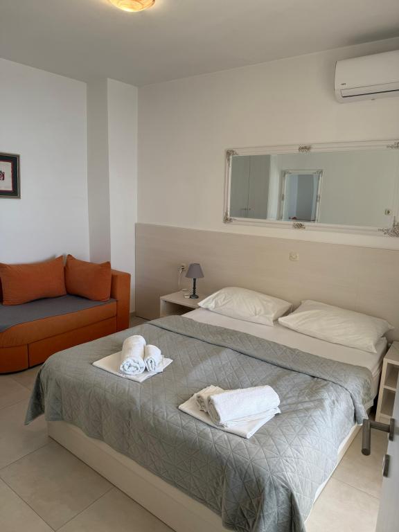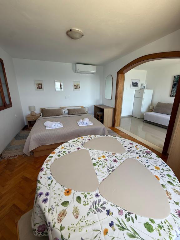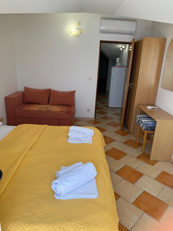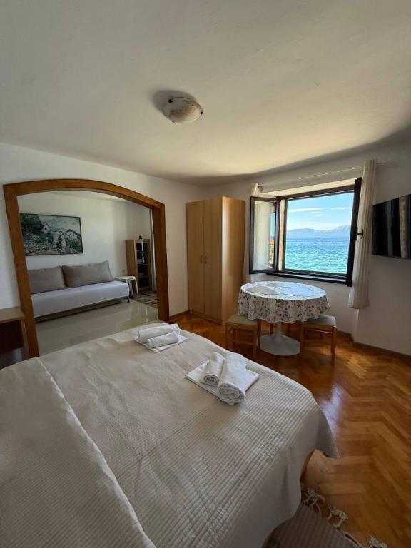 Pobytová taxa není v ceně.Welcome drink, 2 židle, 1 slunečník, poměr odpadky z bytu, nahrazovat špinavé ručníky, utěrky, obecně čistící a měnící se ložní prádlo po 7 dnech nebo podle potřeby ..