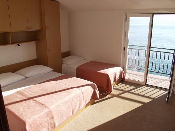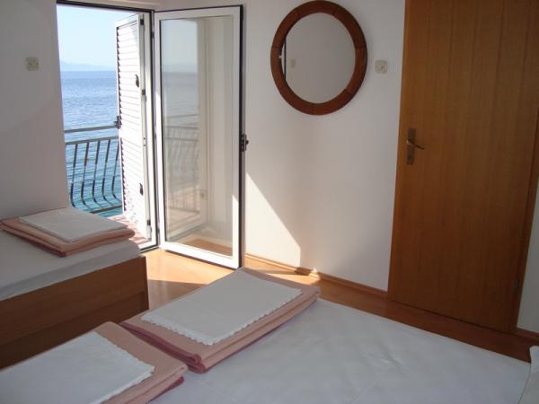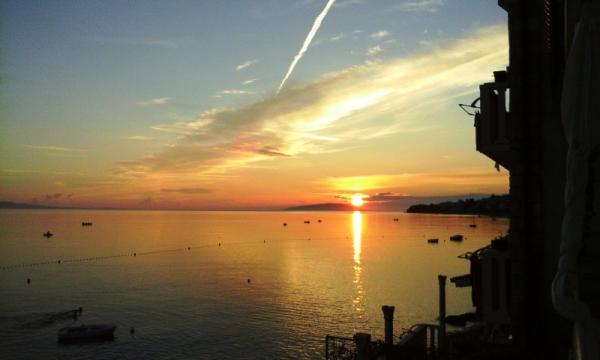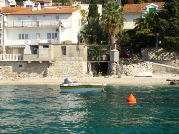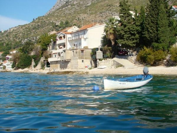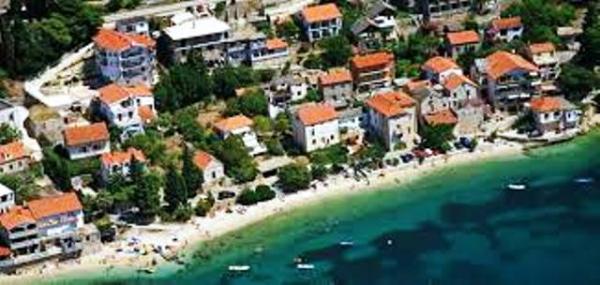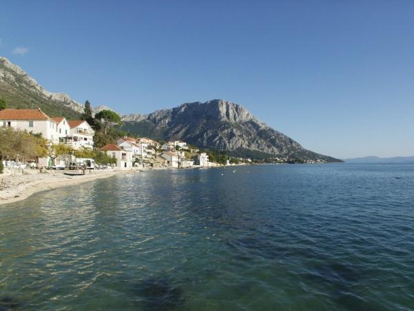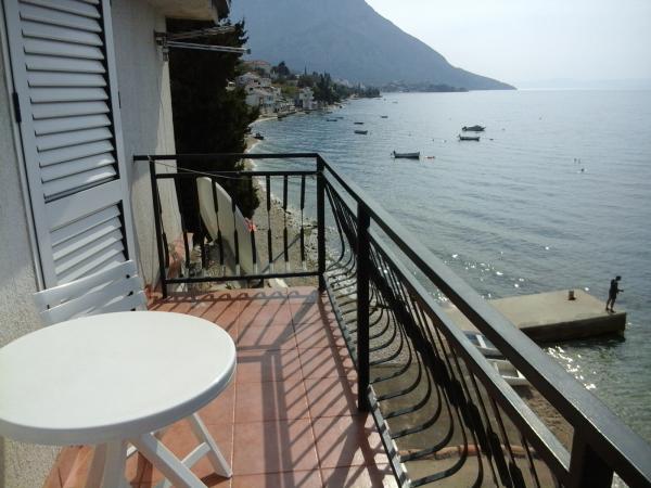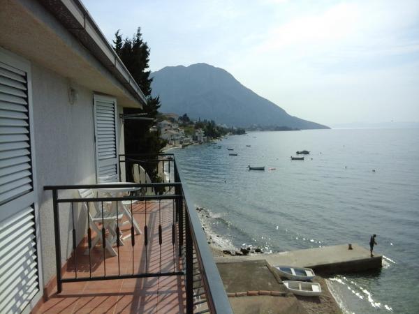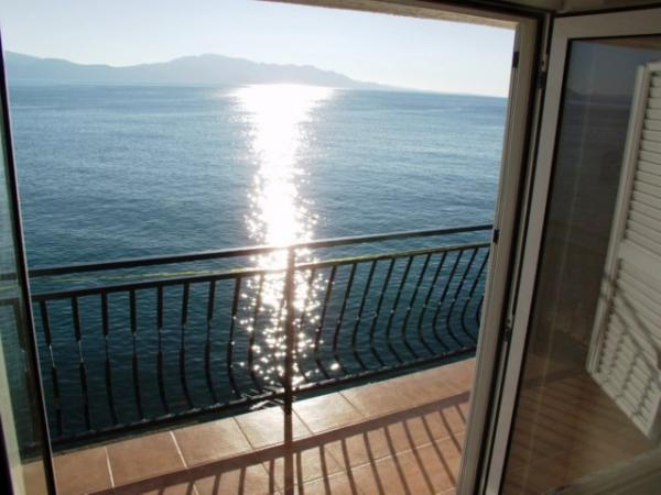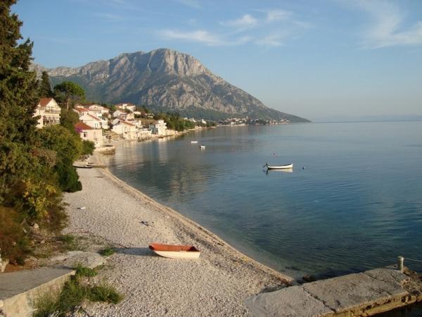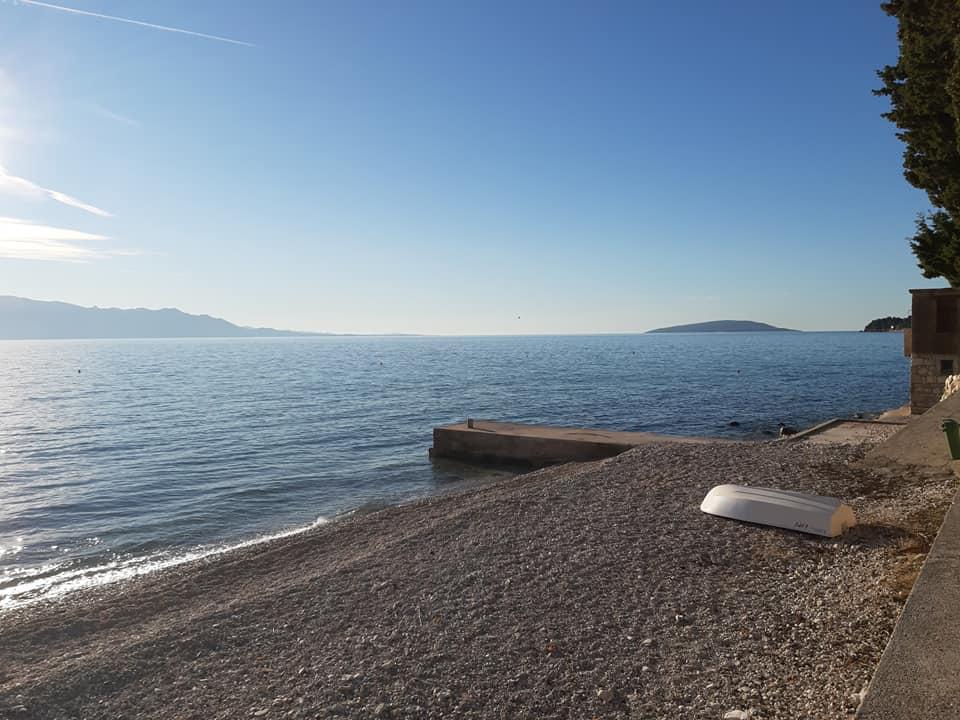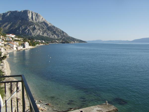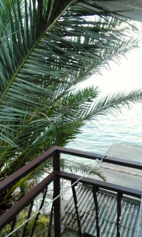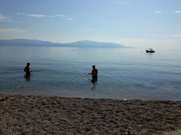 Pláž pod balkonem, čisto, málo lidí.