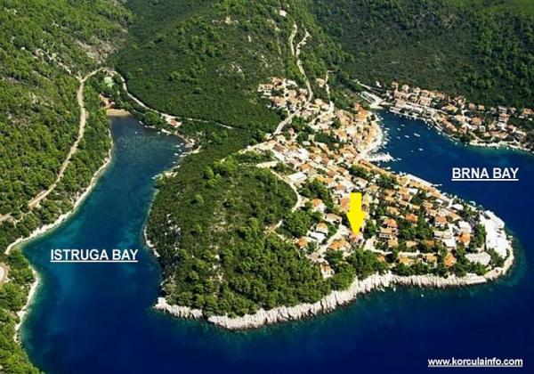 Apartmány se nachází v klidné zátoce Brna na jižní straně ostrova. Nabízíme tři apartmány a studio. Studio je vhodný pro 2 osoby se nachází v přízemí, pokoj a WC, kuchyň a terasa. Byt 3 +1 a 2 +2 osoby jsou vhodné pro rodiny s dětmi, zatímco Suite 4, které má dvě ložnice a je vhodný pro rodiny s dětmi a páry. Apartmány se nacházejí v blízkosti moře a ven z města, což umožňuje hostům vychutnat klid a pohodu. Centrum Brna z bytu je 150 - 200 metrů, tam jsou obchody, restaurace, pošta, kavárny a turistická kancelář. Nedaleko Brna je písečná pláž Istruga známý pro své léčivé bahno, které se přirozeně vyskytuje a je používán k léčbě revmatických onemocnění. Istruga sportovní zázemí, a tak je vhodná pro děti.