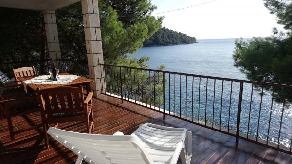 My se nachází v malé zátoce v blízkosti větší obce, s jasnou a čistou vodou. Apartmány se nachází v borovém lese v blízkosti moře. V hotelu je velká zahrada a doprovodné pláž. Balkony jsou velké plochy, prostorný. Z balkonu si můžete vidět mořské dno. Po dohodě s majitelem, nabízíme krátkou jízdu lodí do okolních neobydlených zátokách.