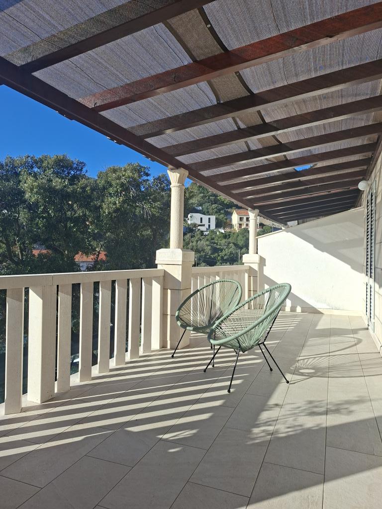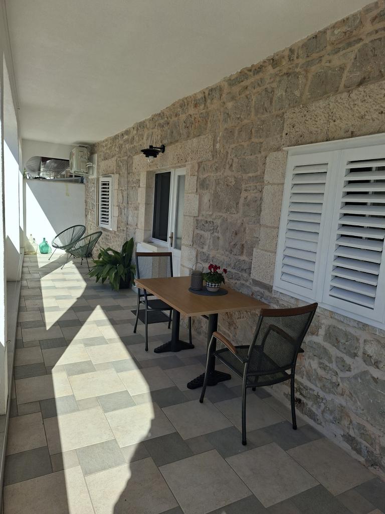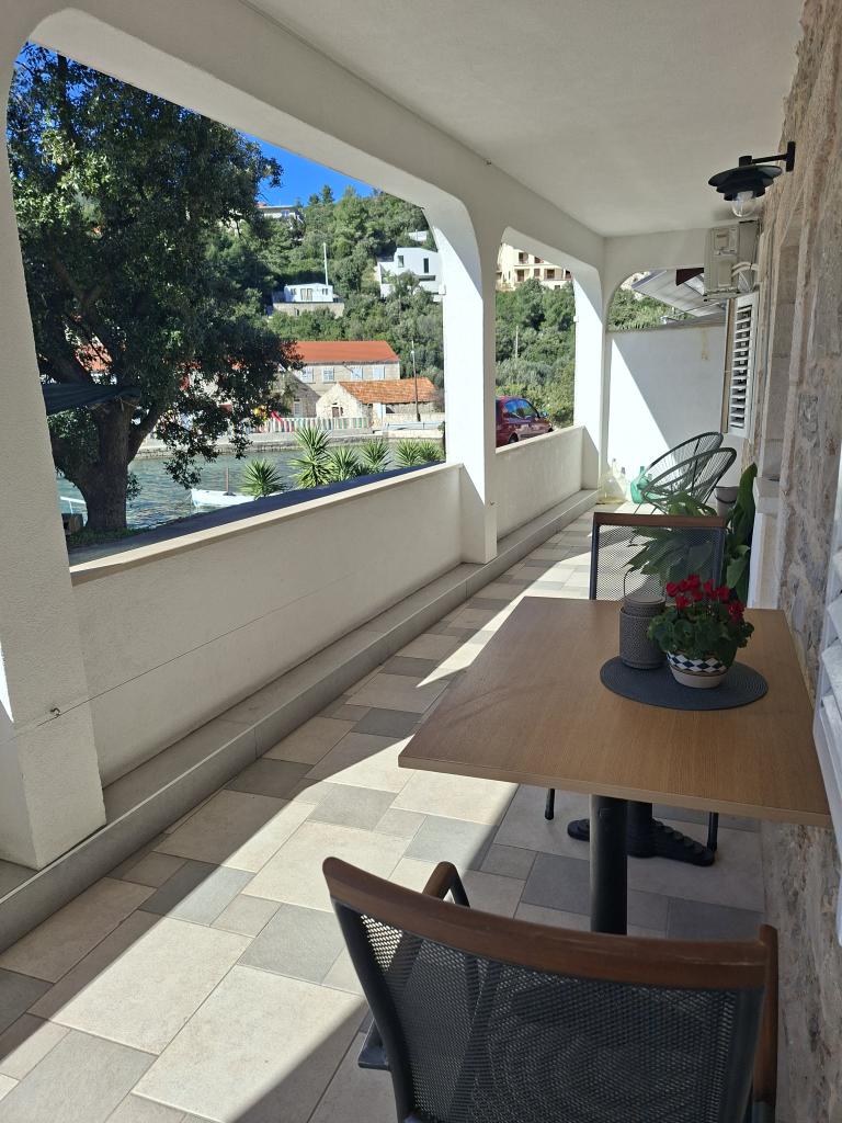 Kompletně a moderně zařízené apartmány v klidné zátoce Brna, na jižní straně ostrova Korčula. Objekt se nachází v centru města, vše je na dosah ruky, obchody, restaurace, pizzerie. Dům je na pobřeží, 6 m, který je ideální pro rodiny s dětmi. Na přední straně je balkon s krásným výhledem na moře, a na zadní straně domu je velký dvůr ideální pro dětskou hru.