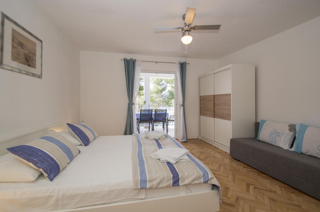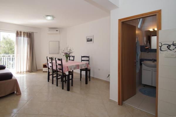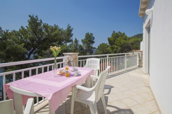 Velmi dobré místo k odpočinku. V apartmánech jsou moje rodina a přátelé, a jsme si pronajali všechny tři byty. Byli jsme velmi potěšeni se servisem a hostitelů. Když jsme dorazili do bytu hostitelé mají nám welcome drink a nabídl chutné koláč. V každém apartmánu jsme byli uvítáni litru vína a šťávy. Později jsme koupili od hostitelů velmi dobrá vína a brandy a velmi chutné domácí marmeláda z fíků. Byli jsme v bytě na konci sezóny, na počátku září, takže tam nebyl dav na pláži, v restauracích, v obchodech ... Apartmány se nacházejí v blízkosti lesa, a tak klidné a tiché, a když spíte od některých pokoje můžete slyšet moře. Apartmány jsou plně vybaveny, čisté a uklizené. Ve velký apartmán pro 8 osob každý pokoj má vlastní sociální zařízení, což je skvělé. Hostitelé mají několikrát připravila velmi chutné večeře. Pláž a moře se nachází v blízkosti apartmánů, a tak jsme často šli na pláž a apartmány. Moře je čisté, přímo pod domem, na začátku jsme měli nějaké problémy, protože tam nejsou žádné schody se dostat dovnitř a ven z moře, ale rychle jsme zvládli techniku. Cestoval jsme celý ostrov, jsme potěšeni zejména města Korčula. Město Korčula je krásná, ale také poměrně drahé. Na konci našich rekreačních hostitelských dal každá rodina malý dárek, malou láhev brandy a levandule, super suvenýr :) To je velmi dobrým místem pro dovolenou !!!